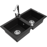 Mexen Mario granitais izlietne ar diviem nodalījumiem un virtuves maisītāju Rita, melns/sudraba metālisks - 6504-73-670300-00