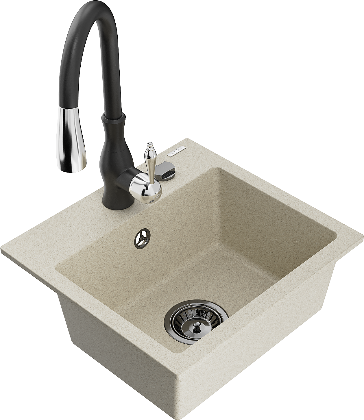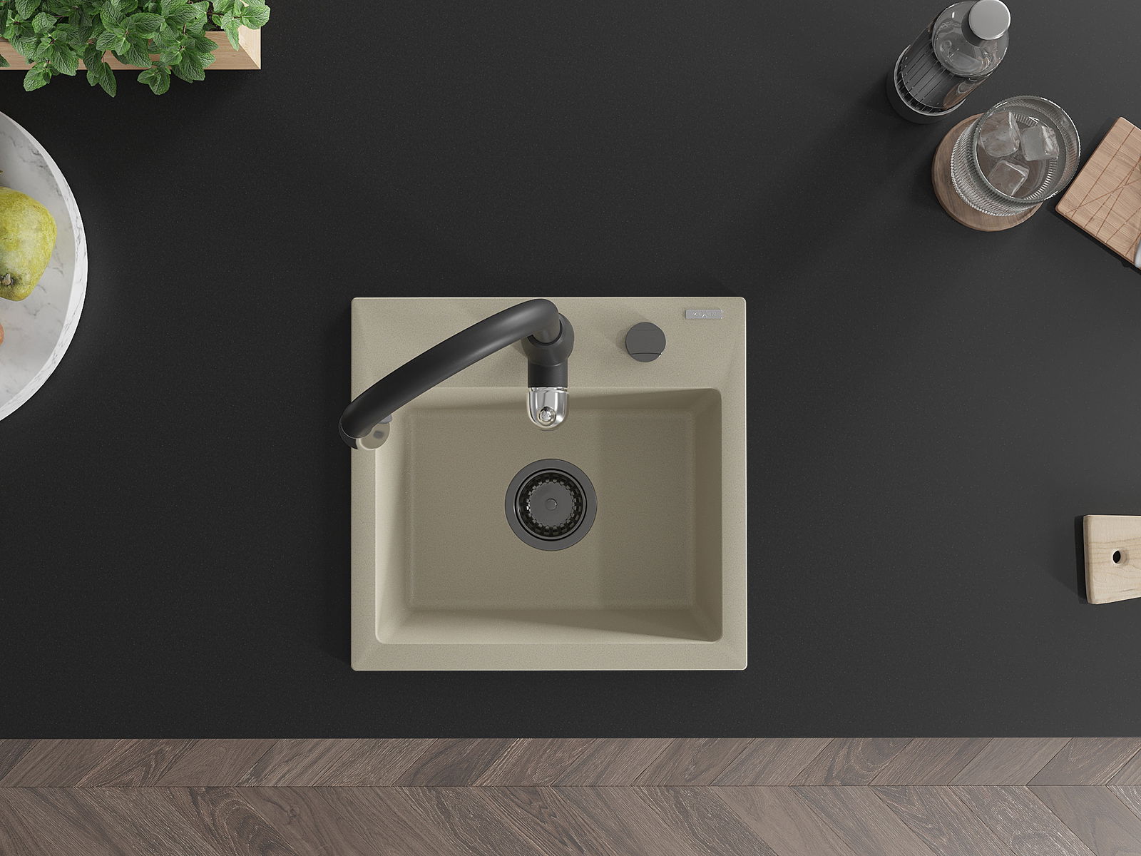 Mexen Milo granitā izlietne ar vienu nodalījumu un virtuves jaucējkrānu Savita, bēšs - 6505-69-672601-70