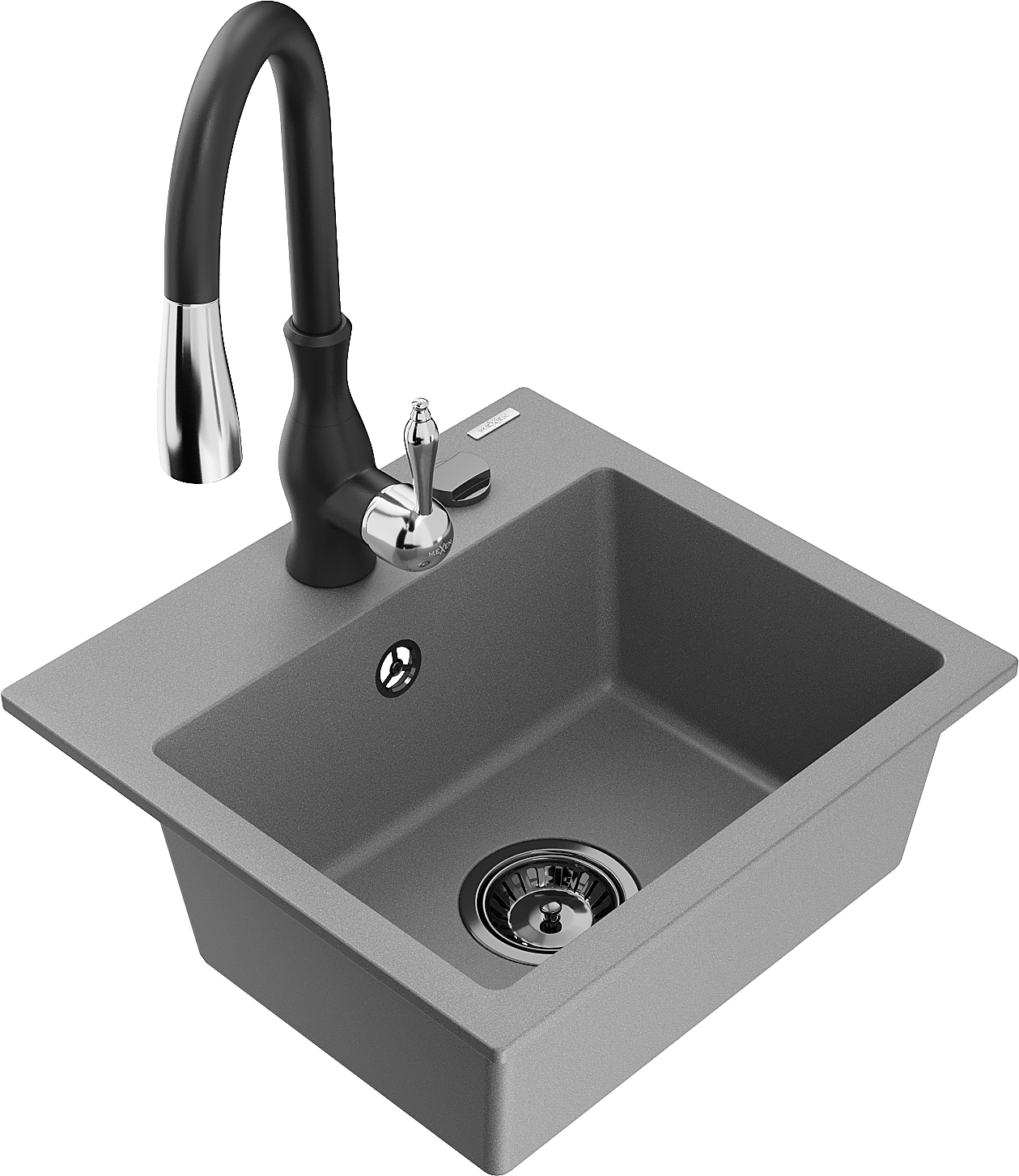 Mexen Milo 1-kameru granīta izlietne ar virtuves jaucējkrānu Savita, pelēka - 6505-71-672601-70-B