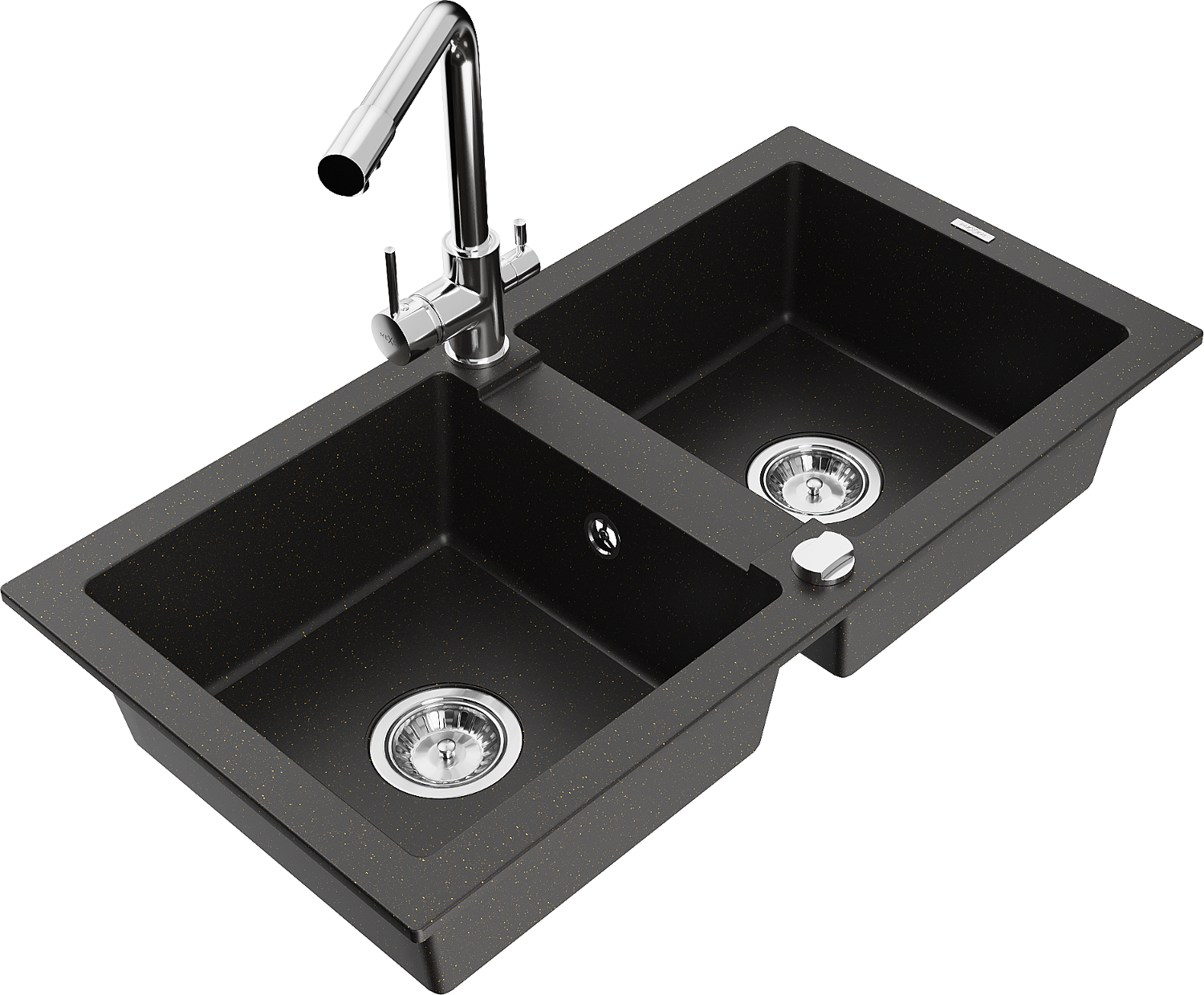 Mexen Mario divpusēja granīta izlietne ar virtuves jaucējkrānu Duero, melns/zeltains metālisks - 6504-75-671600-00