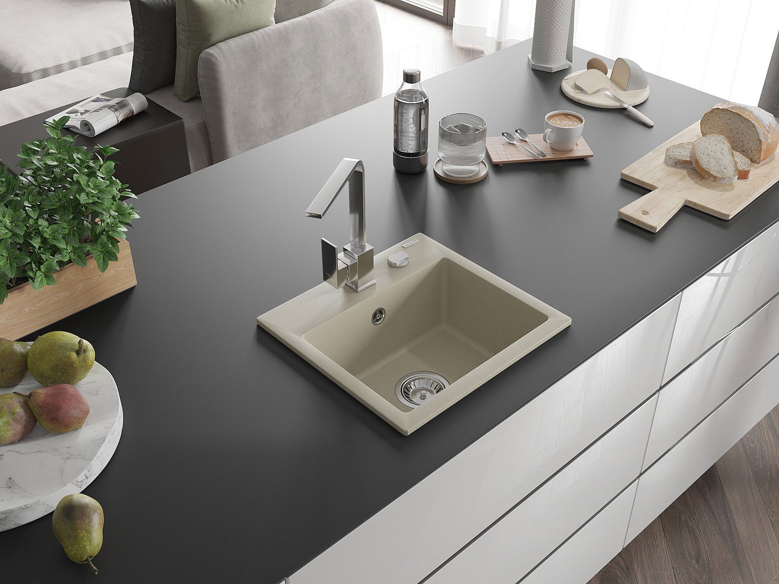 Izlietnes virsma ir izturīga pret traipiem un krāsas izmaiņām, tāpēc to ir viegli uzturēt tīru un tā saglabā savu krāsu ilgu lietošanas laiku. Estētiski un praktiski papildina jebkuru virtuvi.
