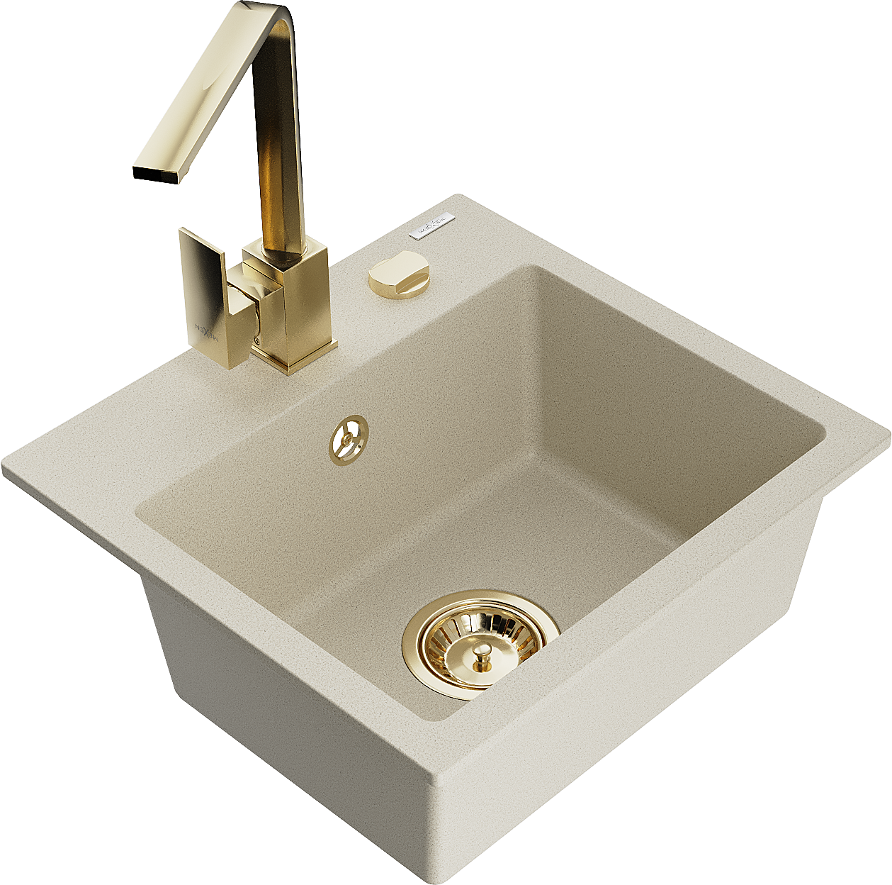 Mexen Milo 1-kameru granīta izlietne ar virtuves jaucējkrānu Rita, bēša - 6505-69-670300-50
