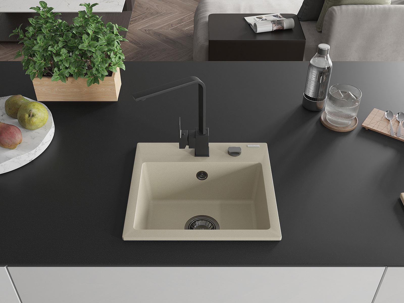 Mexen Milo granitā izlietne ar vienu nodalījumu un virtuves jaucējkrānu Rita, bēšs - 6505-69-670300-70