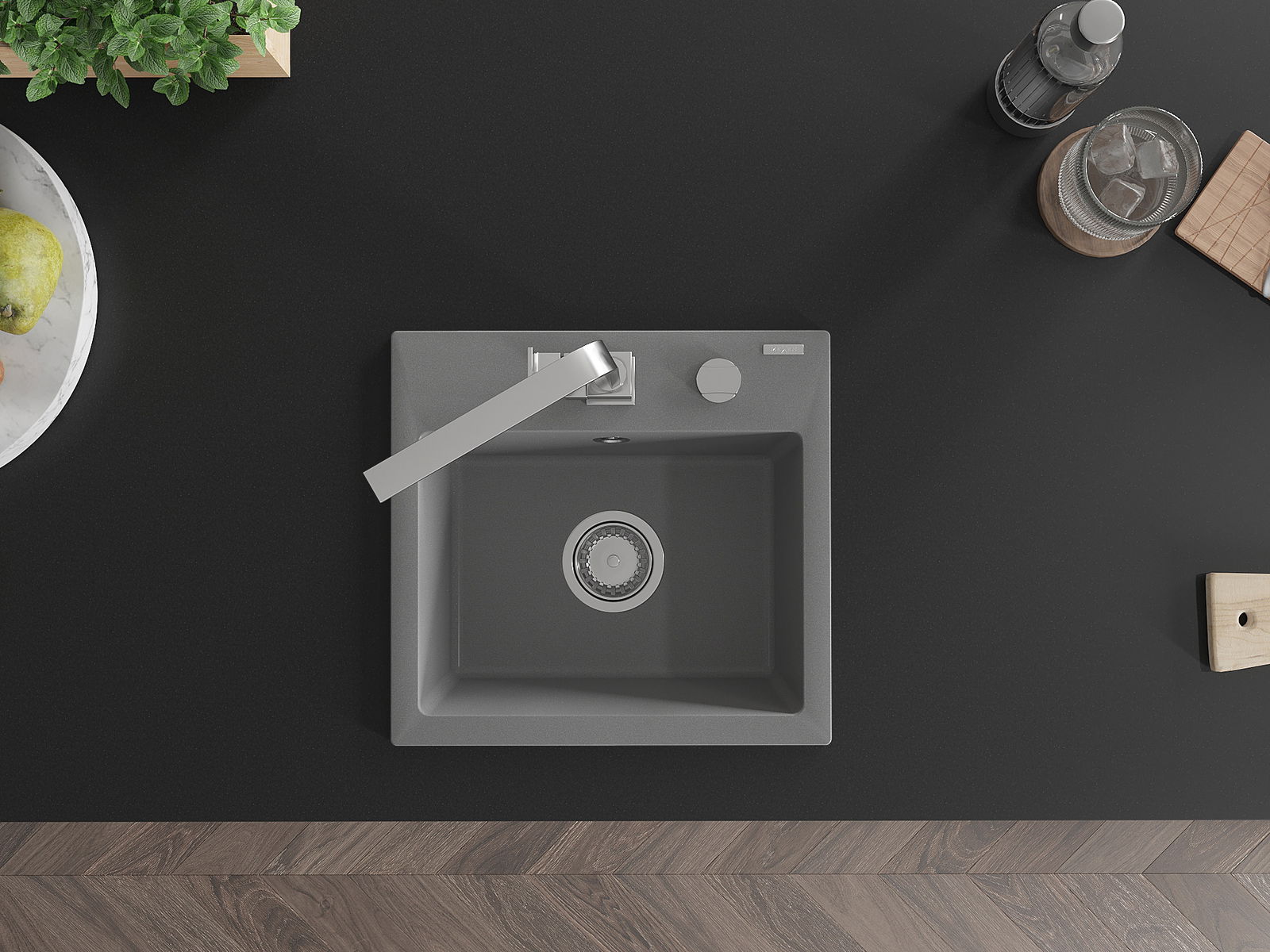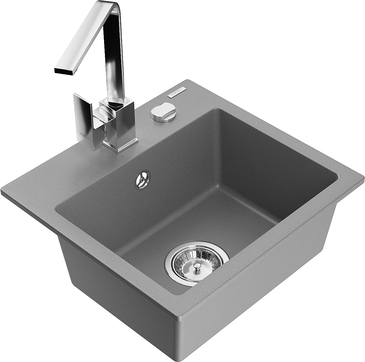 Mexen Milo granīta izlietne ar 1 nodalījumu un virtuves jaucējkrānu Rita, pelēka - 6505-71-670300-00
