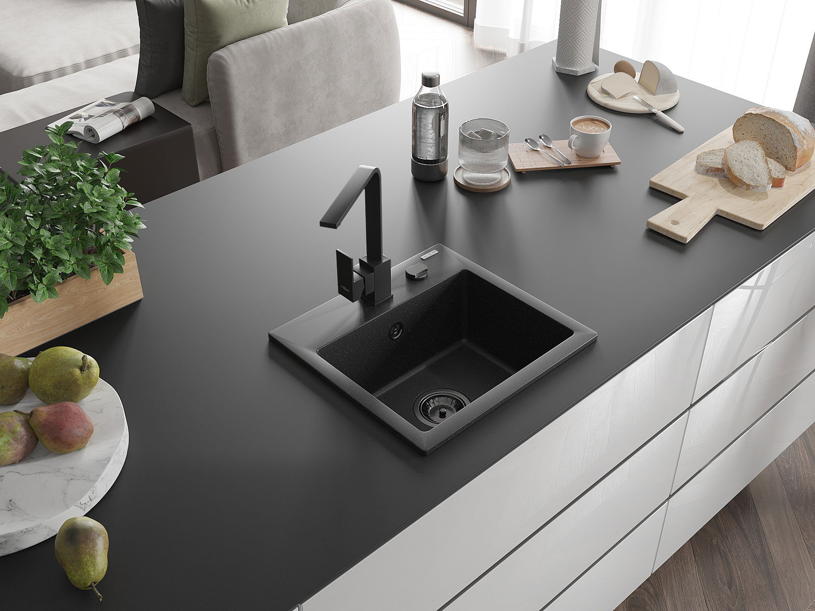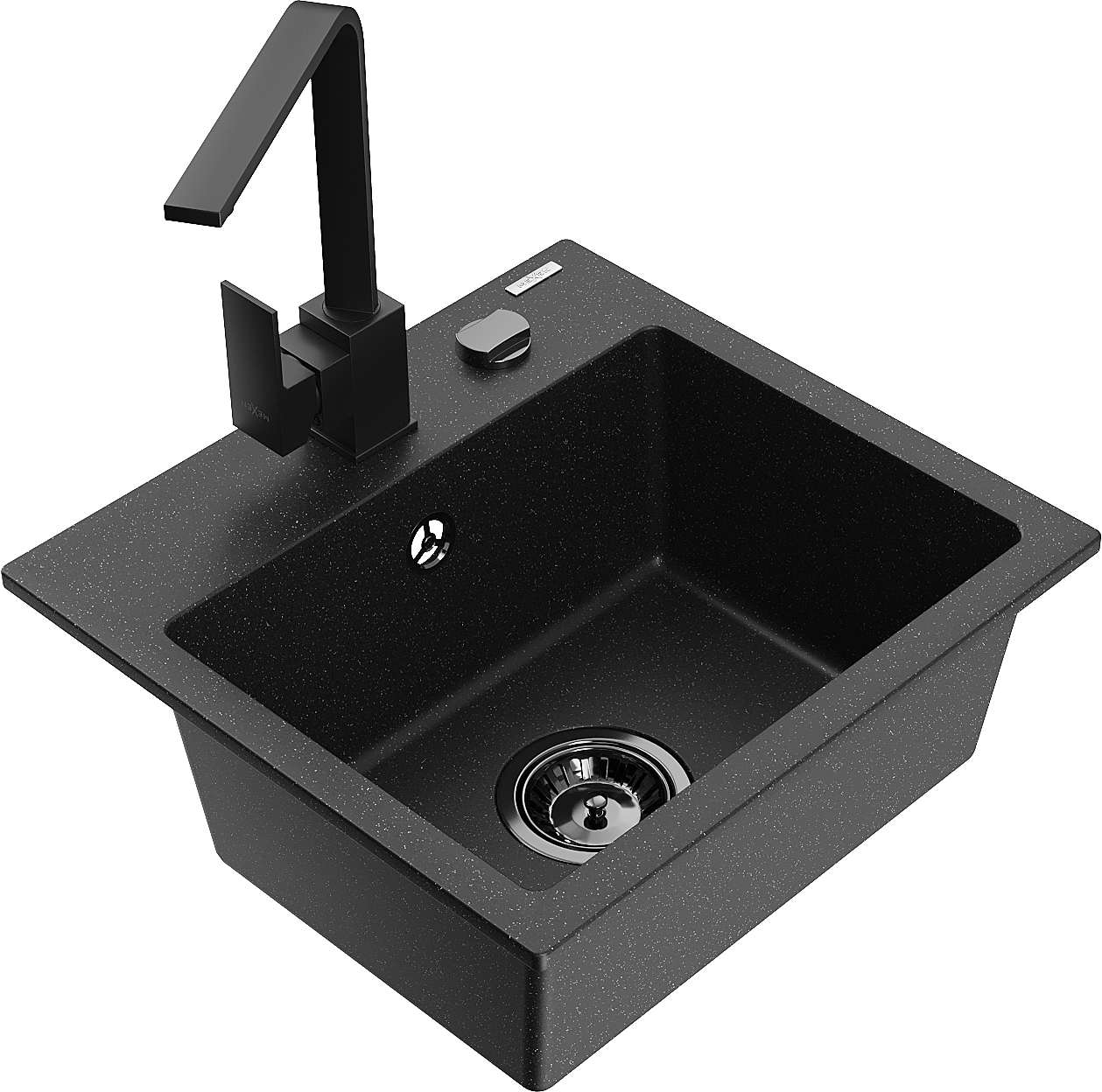 Mexen Milo 1 nodalījuma granīta izlietne ar virtuves jaucējkrānu Rita, melna/sudraba metālika - 6505-73-670300-70-B