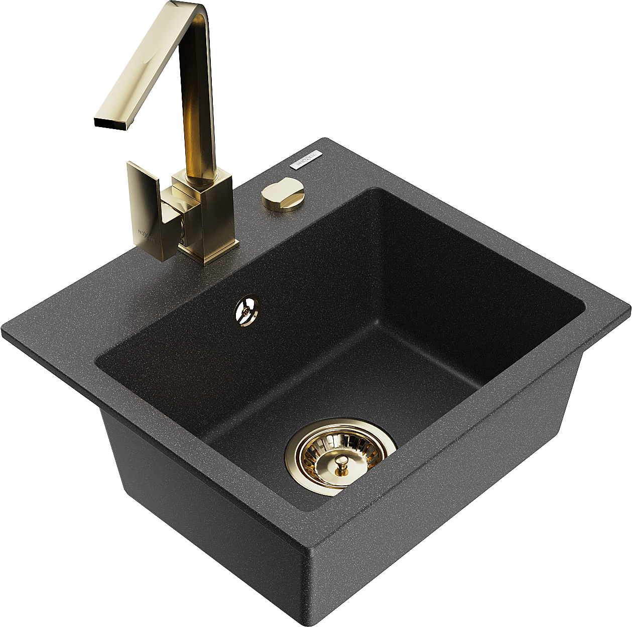 Mexen Milo granīta izlietne ar vienu nodalījumu un virtuves jaucējkrānu Rita, melna ar plankumiem - 6505-76-670300-50