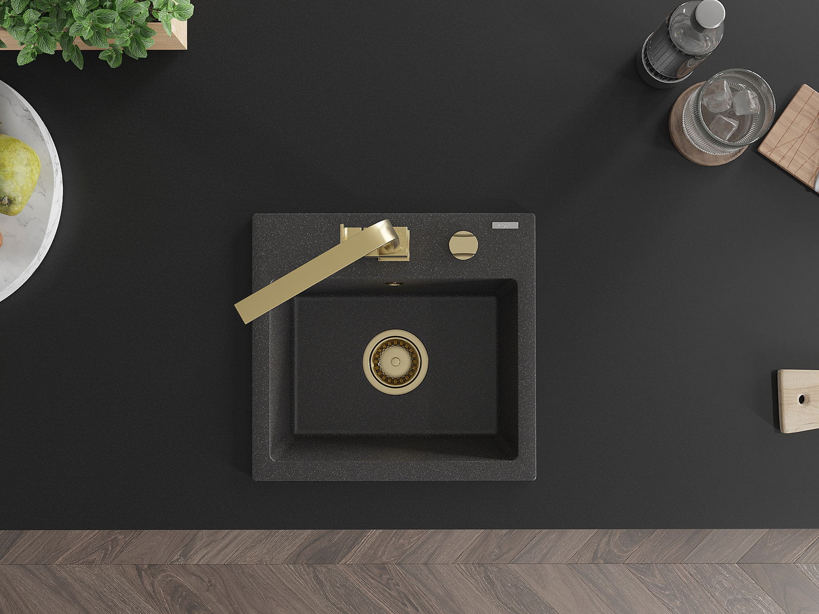 Izlietnei ir padziļināts caurums ar diametru 35 mm, kuru varat izsist patstāvīgi. To var izmantot, piemēram, šķidruma dozatora uzstādīšanai, kas novērsīs plastmasas pudeļu klātbūtni virtuvē un piešķirs tai elegantu apdari.