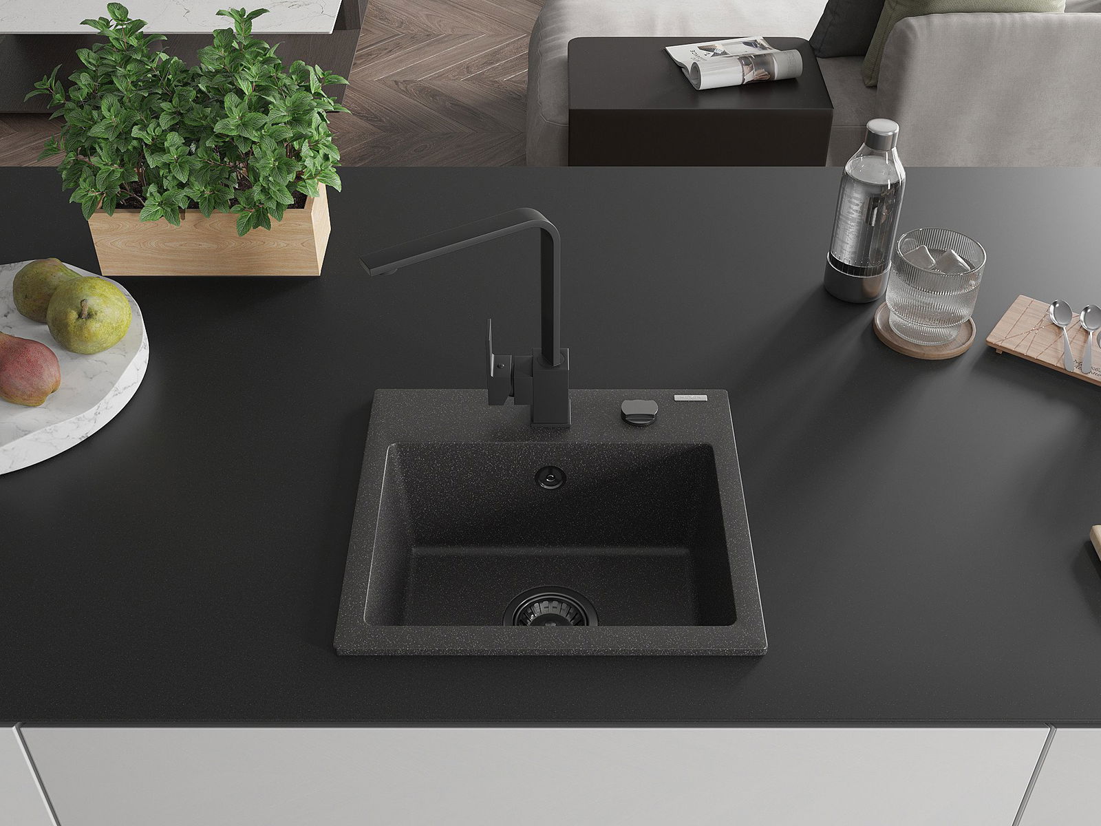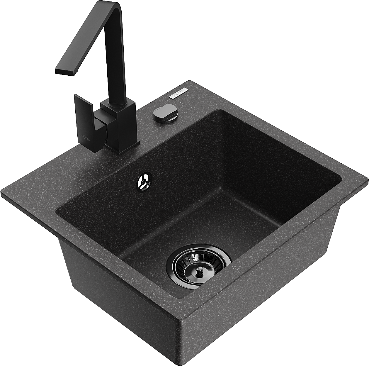 Mexen Milo granitais izlietne ar vienu nodalījumu un virtuves jaucējkrānu Rita, melns ar plankumiem - 6505-76-670300-70-B