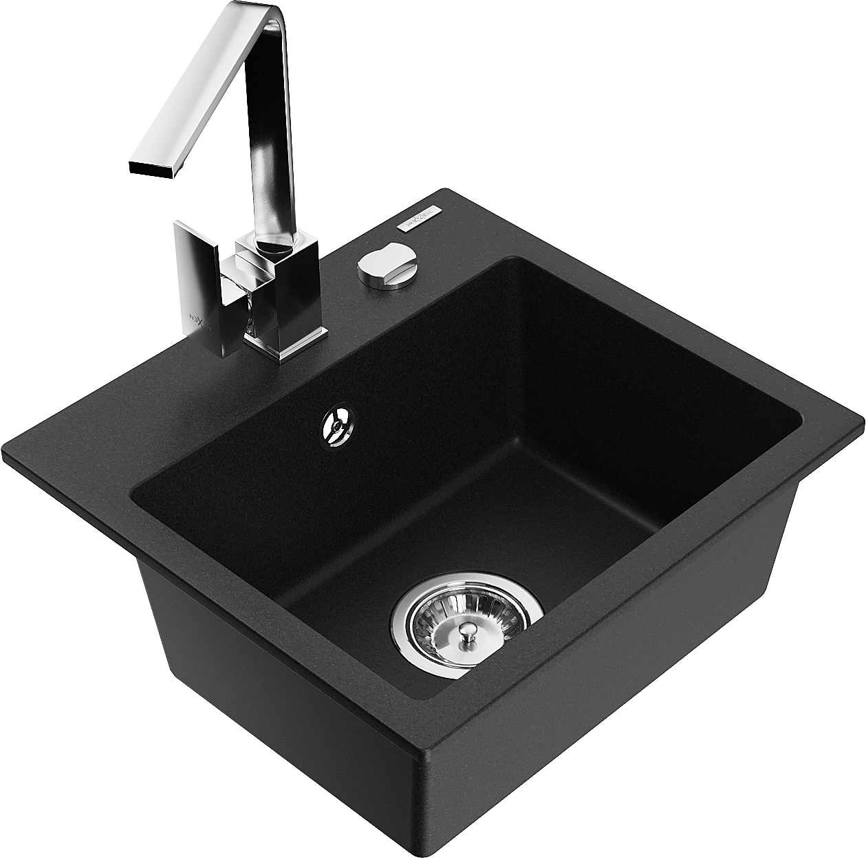 Mexen Milo granitizlietne ar vienu nodalījumu ar virtuves jaucējkrānu Rita, melns - 6505-77-670300-00