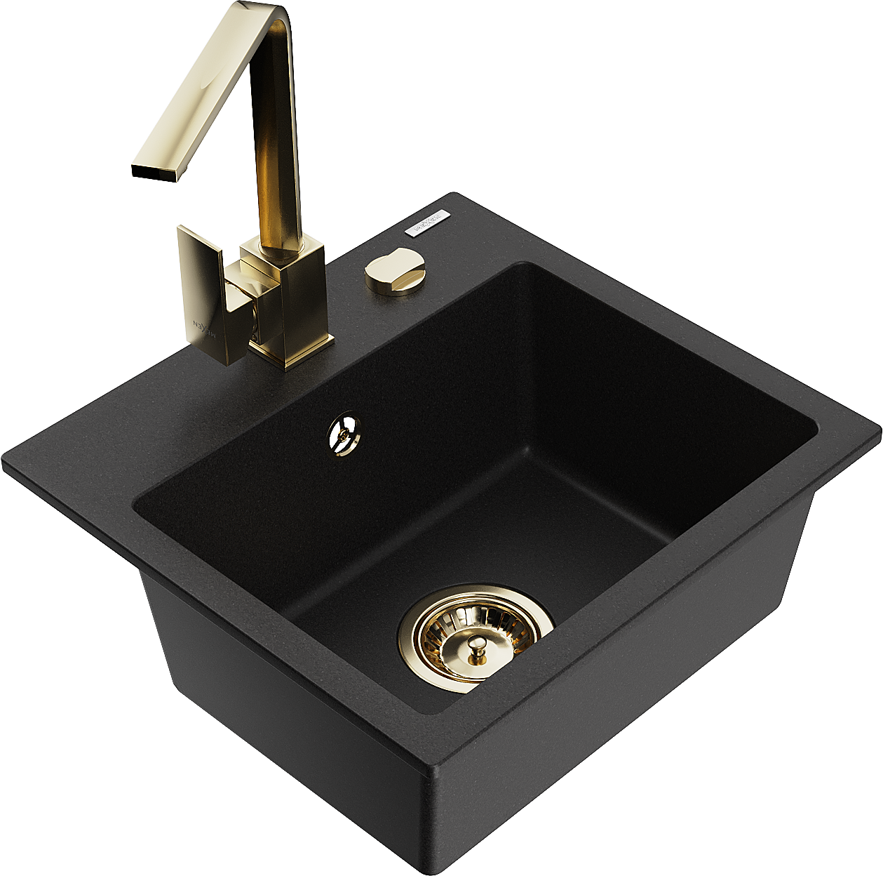Mexen Milo granitizlietne viena nodalījuma ar virtuves jaucējkrānu Rita, melna - 6505-77-670300-50