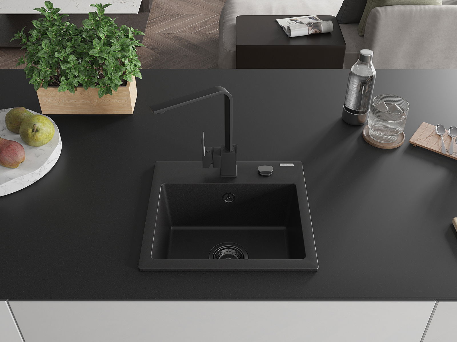 Mexen Milo granitizlietne ar 1 nodalījumu un virtuves jaucējkrānu Rita, melns - 6505-77-670300-70-B