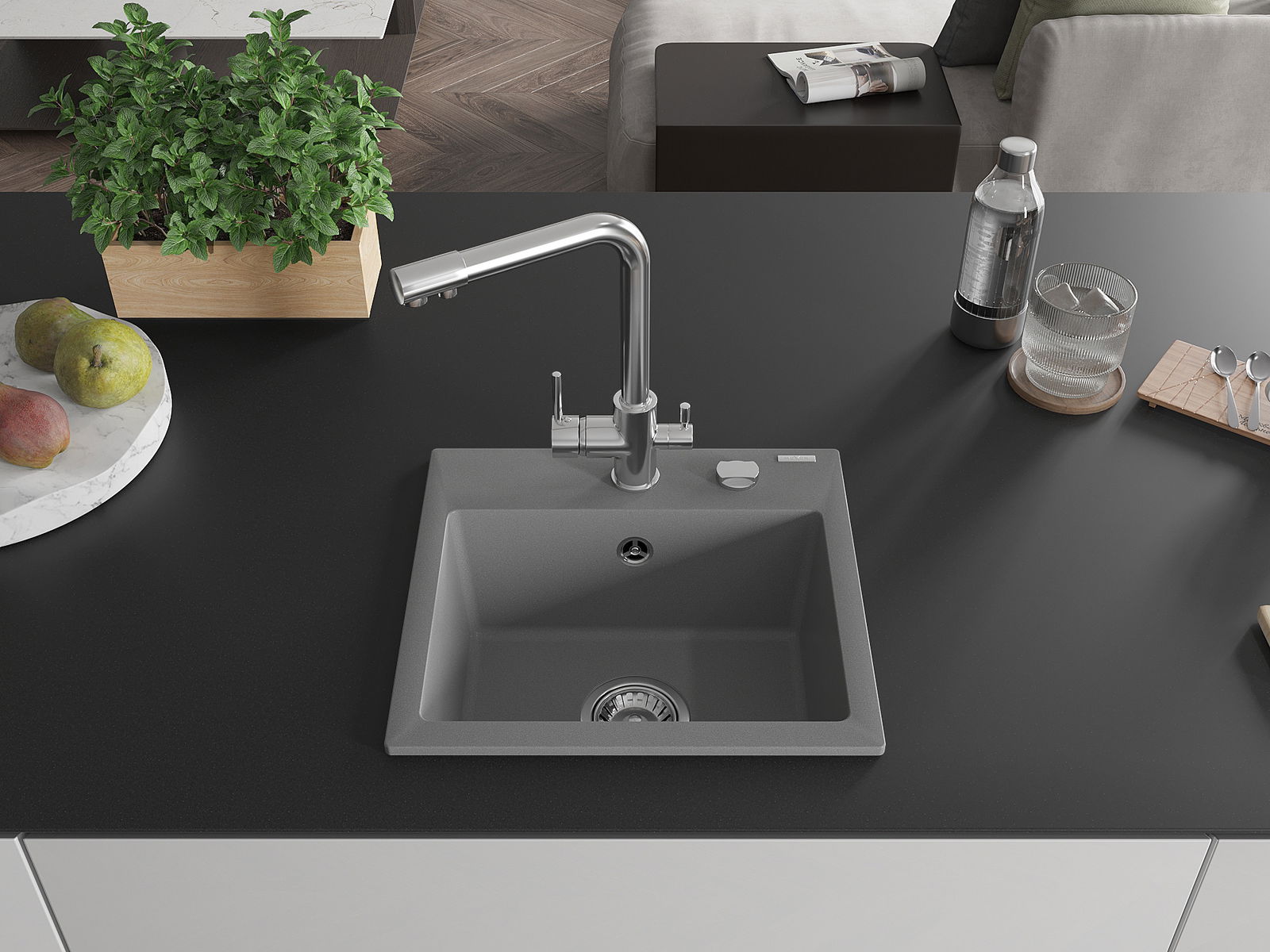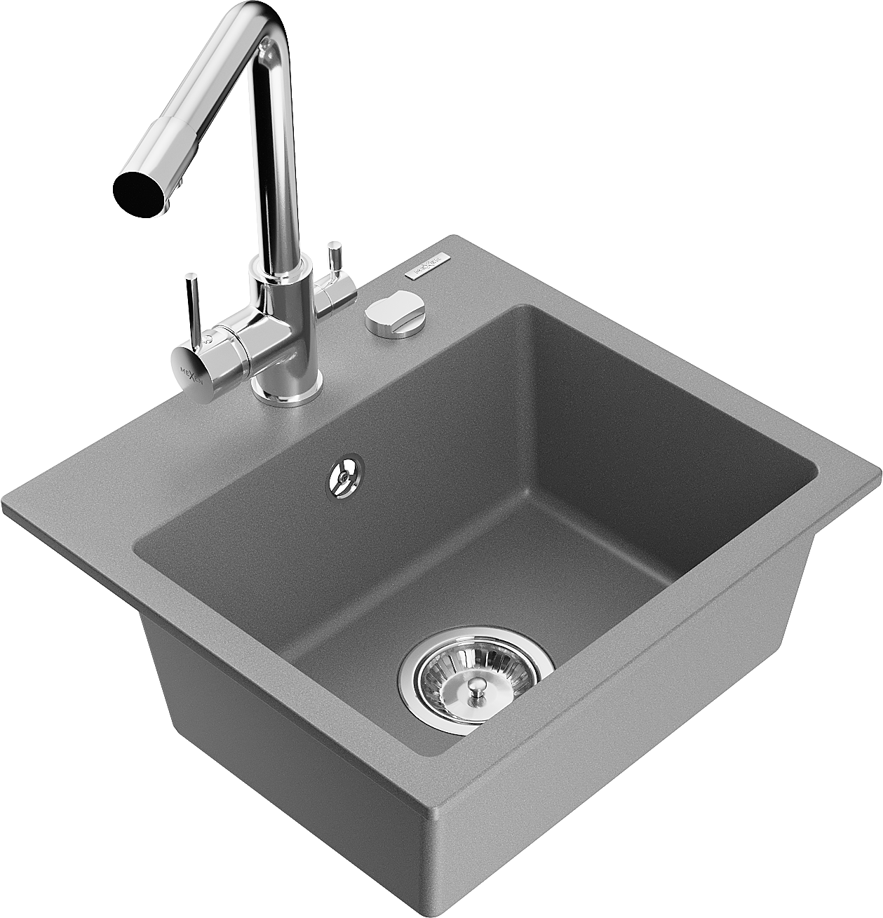 Mexen Milo granitā izlietne ar 1 nodalījumu un virtuves krānu Duero, pelēka - 6505-71-671600-00