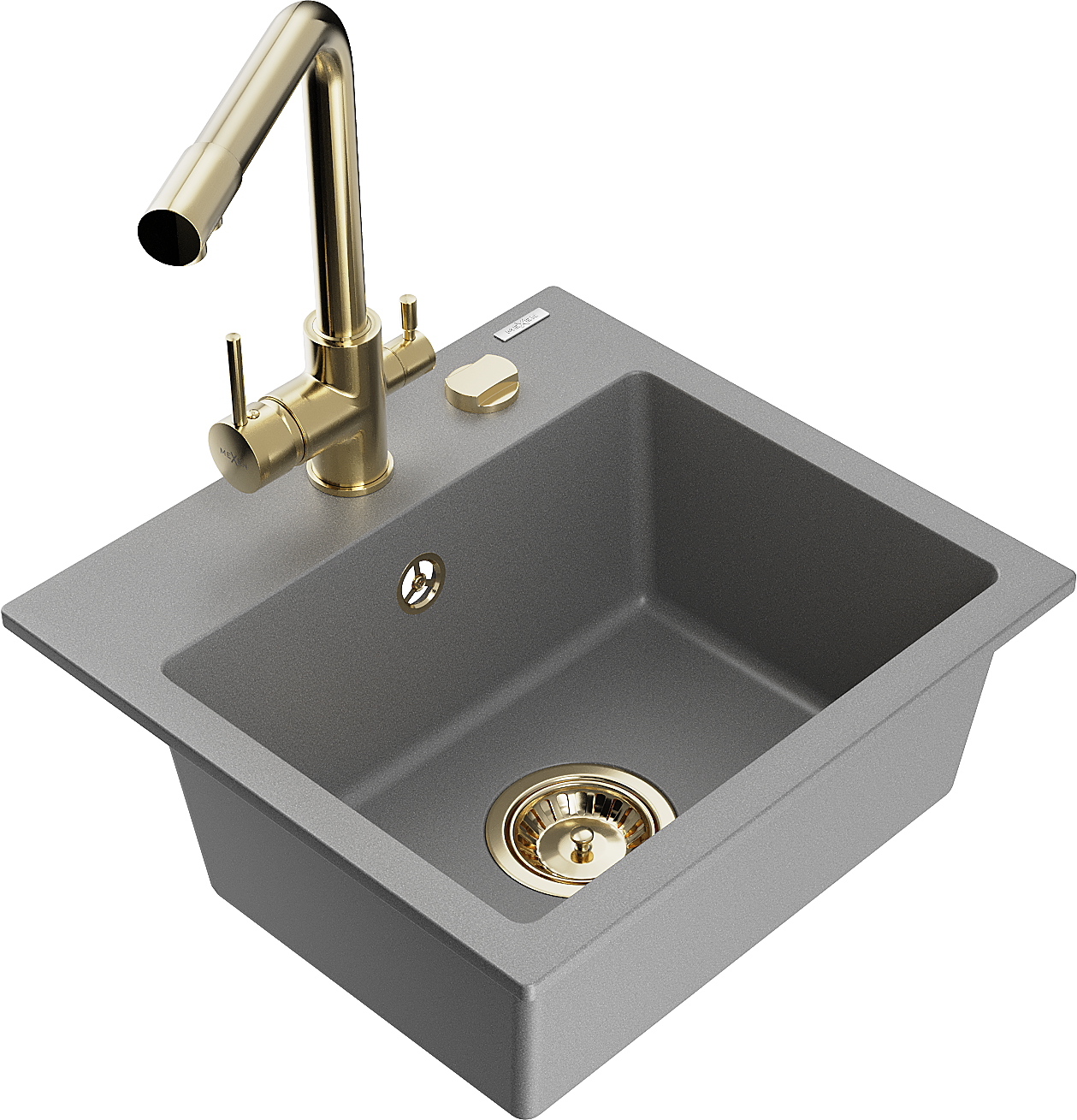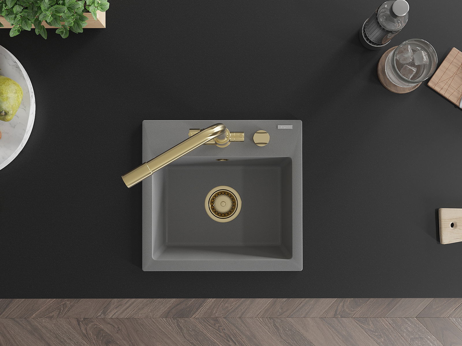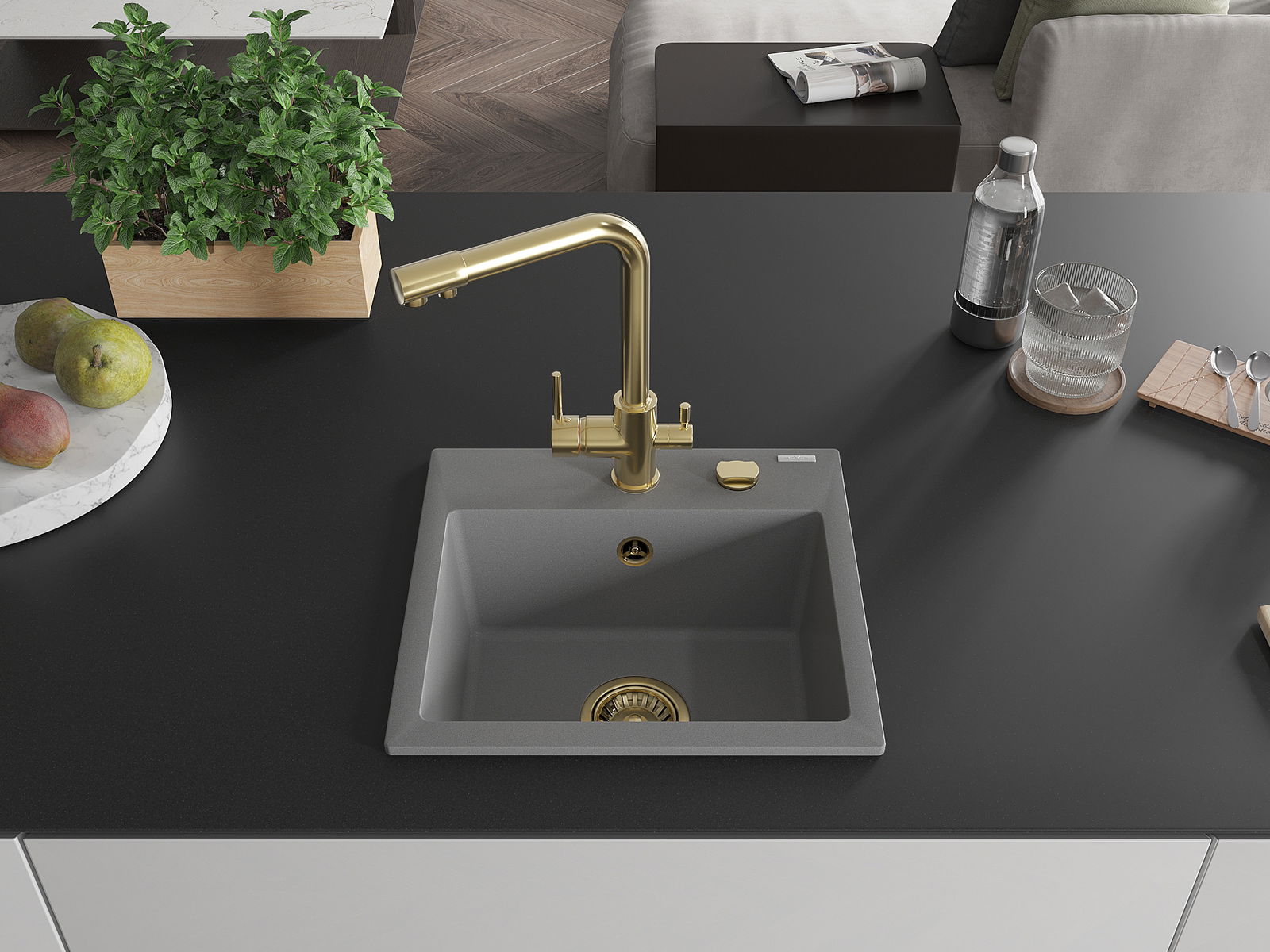Mexen Milo 1-kameru granīta izlietne ar virtuves jaucējkrānu Duero, pelēka - 6505-71-671600-50