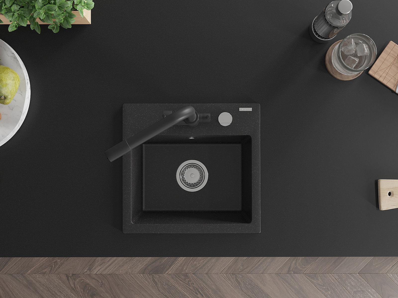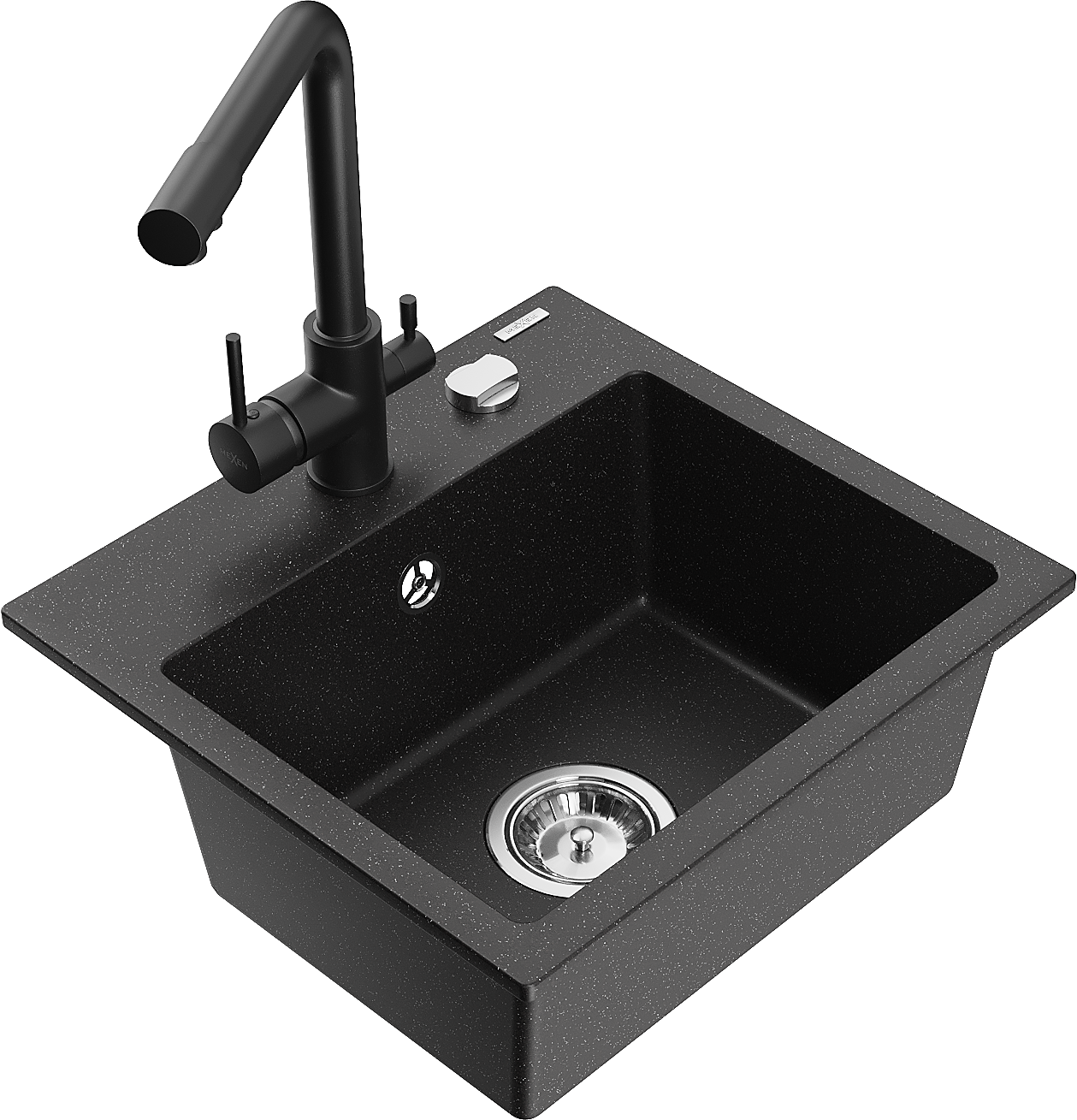 Mexen Milo granit izlietne ar vienu nodalījumu un virtuve jaucējkrānu Duero, melns/sudraba metālisks - 6505-73-671600-70
