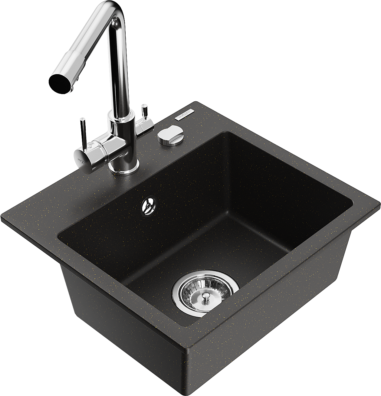 Mexen Milo granitizlietne izlietne ar 1 nodalījumu un virtuves jaucējkrānu Duero, melns/zeltains metālisks - 6505-75-671600-00