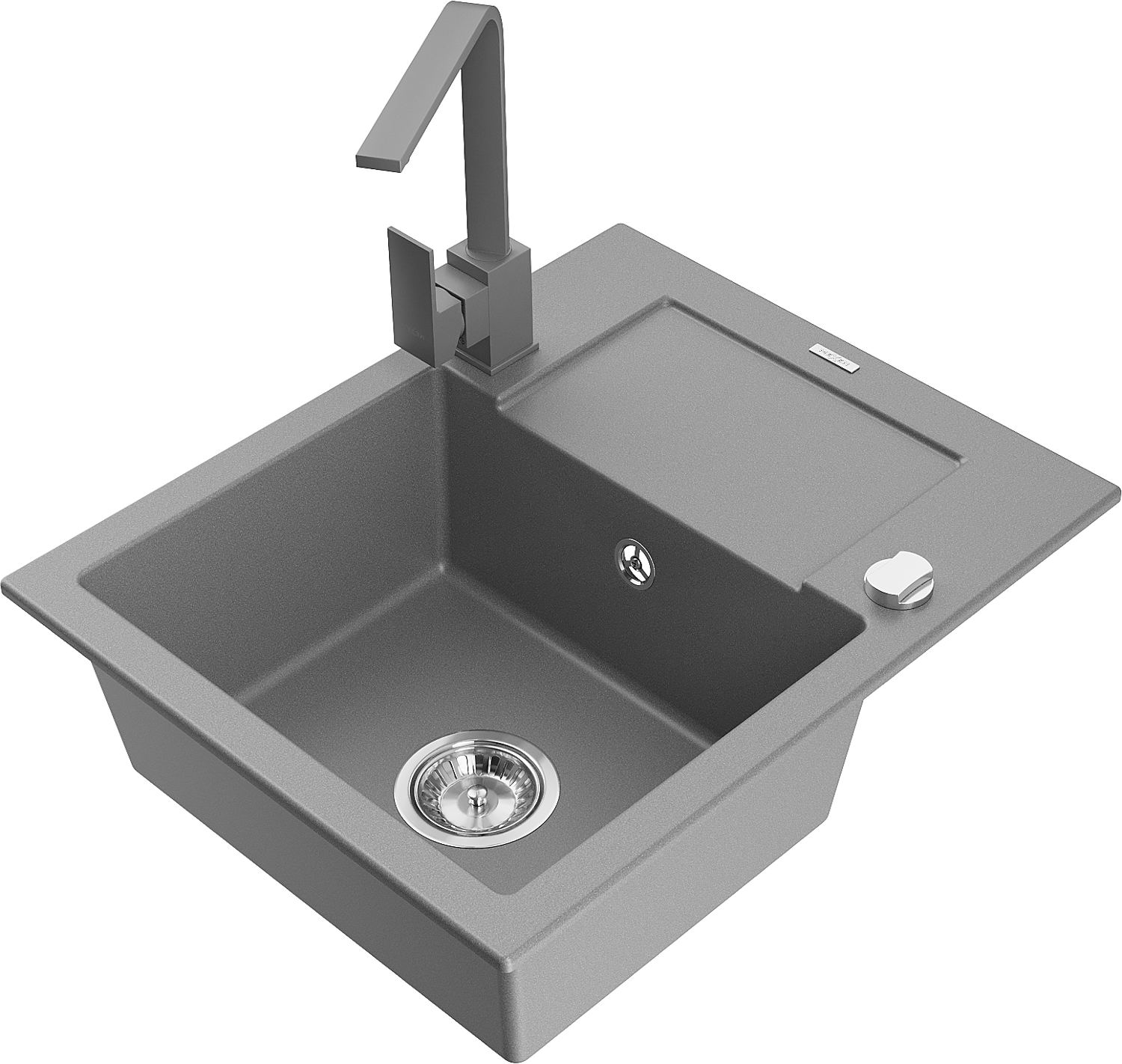 Mexen Enzo viena nodalījuma granīta izlietne ar notecētāju un virtuves jaucējkrānu Rita, pelēka - 6506-71-670300-71