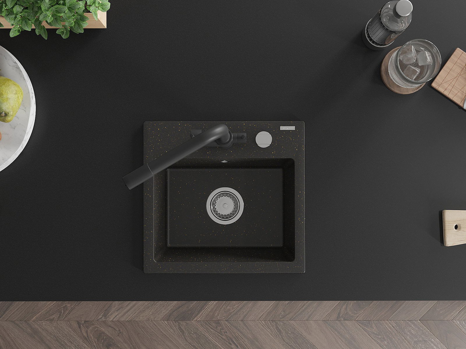 Mexen Milo granitā izlietne ar 1 nodalījumu un virtuvēm bateriju Duero, melns/zeltains metāliskums - 6505-75-671600-70