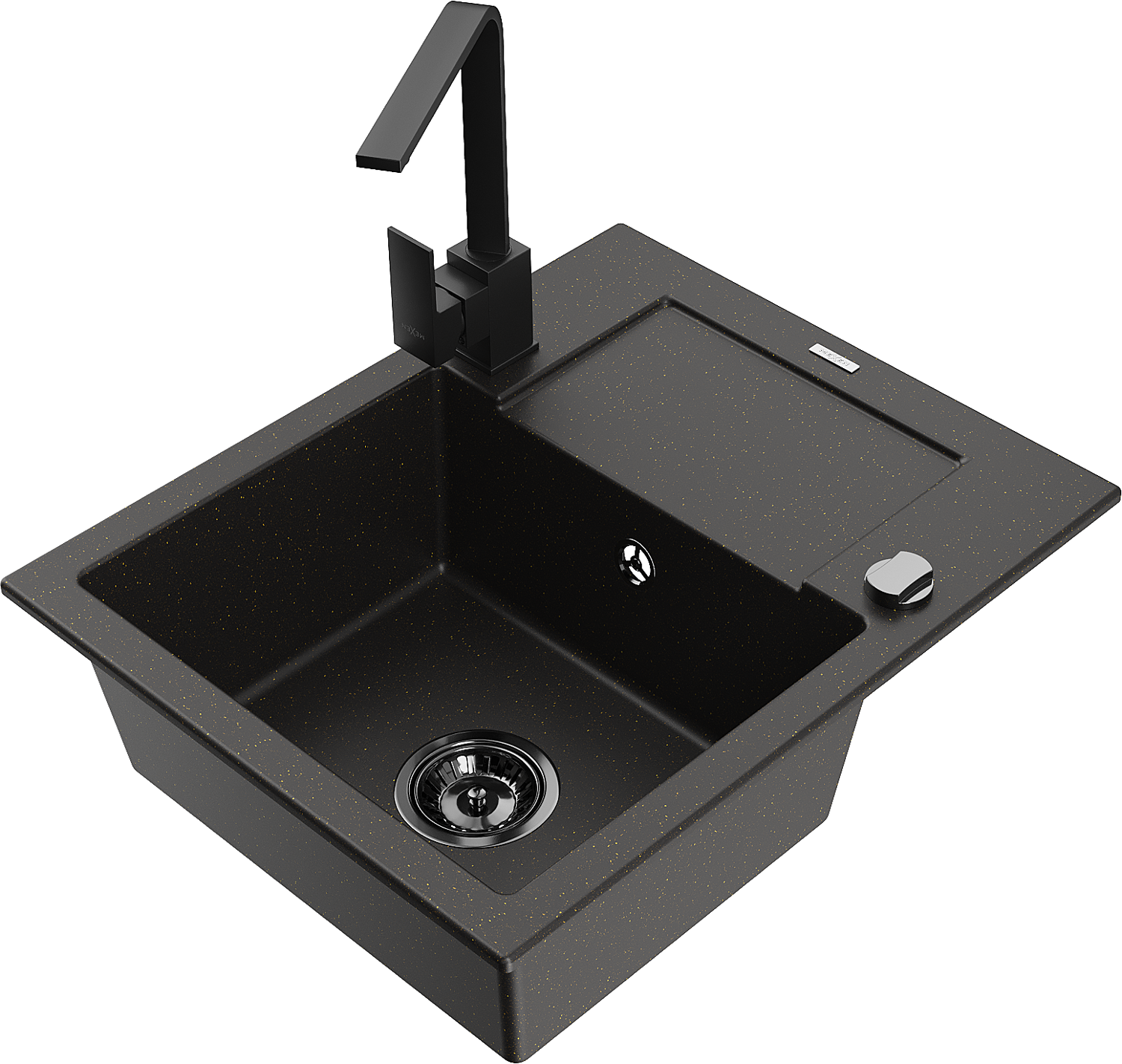 Mexen Enzo granitizlietne ar vienu nodalījumu, ar noteces paliktni un virtuves jaucējkrānu Rita, melna/zeltīta metālika