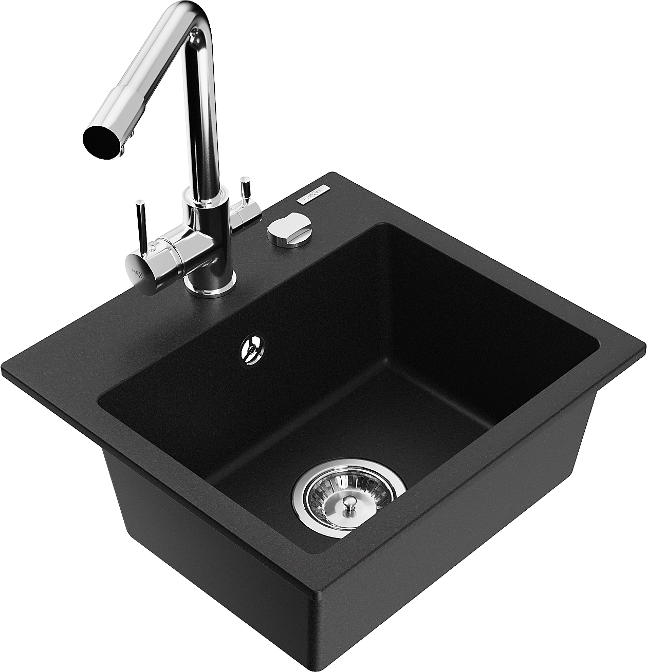 Mexen Milo Granīta izlietne ar 1 nodalījumu un virtuves krānu Duero, melna - 6505-77-671600-00