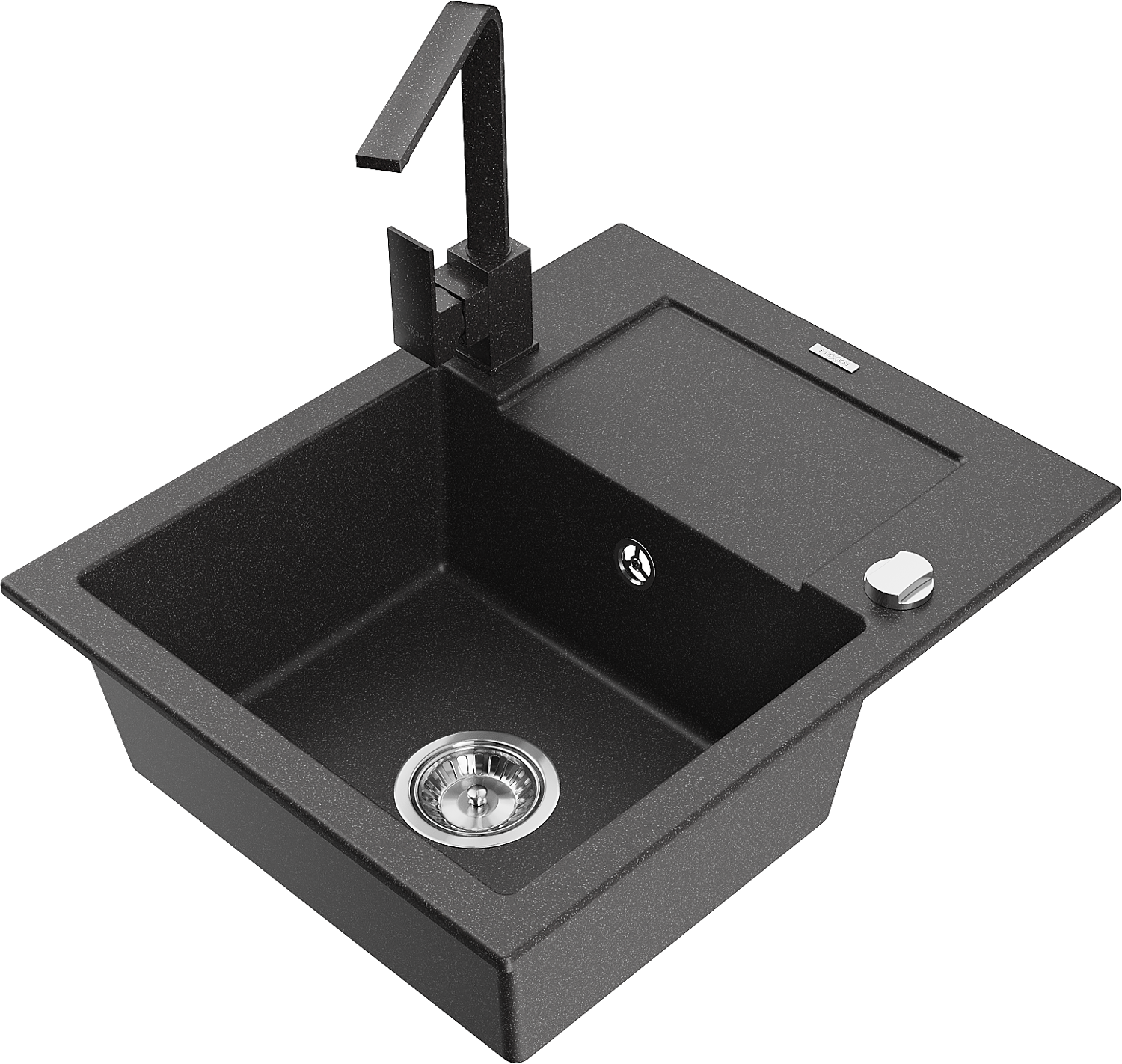 Mexen Enzo granitizlietne ar vienu nodalījumu ar noteci un virtuves jaucējkrānu Rita, melna ar baltām plankumiem