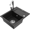 Mexen Enzo granitizlietne ar 1 nodalījumu un noteci un virtuves krānu Rita, melns - 6506-77-670300-00