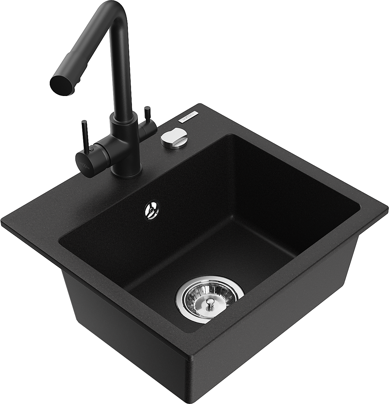 Mexen Milo grants viena bļoda izlietne ar virtuves jaucējkrānu Duero, melns - 6505-77-671600-70