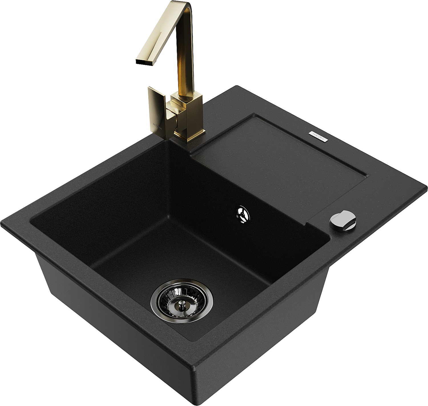 Mexen Enzo granitā izlietne ar vienu nodalījumu un noteku un virtuves jaucējkrānu Rita, melna - 6506-77-670300-50-B