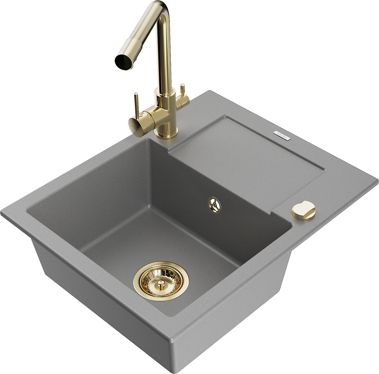 Mexen Enzo 1-kameru granīta izlietne ar noteku un virtuves jaucējkrānu Duero, pelēks - 6506-71-671600-50