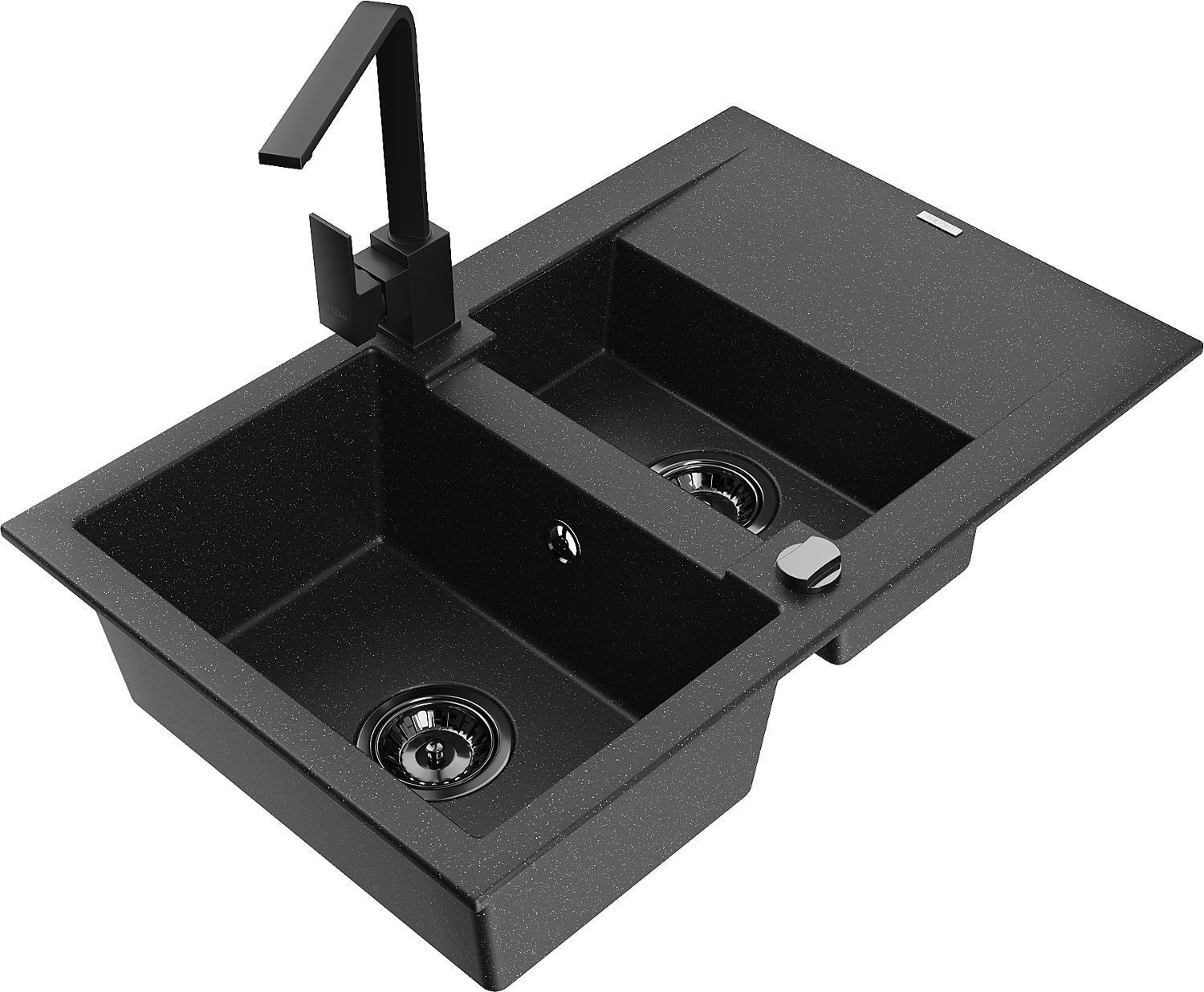 Mexen Gaspar granīta izlietne 1,5 nodalījumu ar noteku un virtuves jaucējkrānu Rita, melna/sudraba - 6507-73-670300-70-B