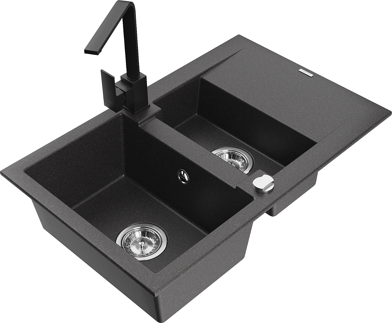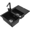 Mexen Gaspar 1,5 bļodu granīta izlietne ar noteci un virtuves jaucējkrānu Rita, melna ar plankumiem - 6507-76-670300-70