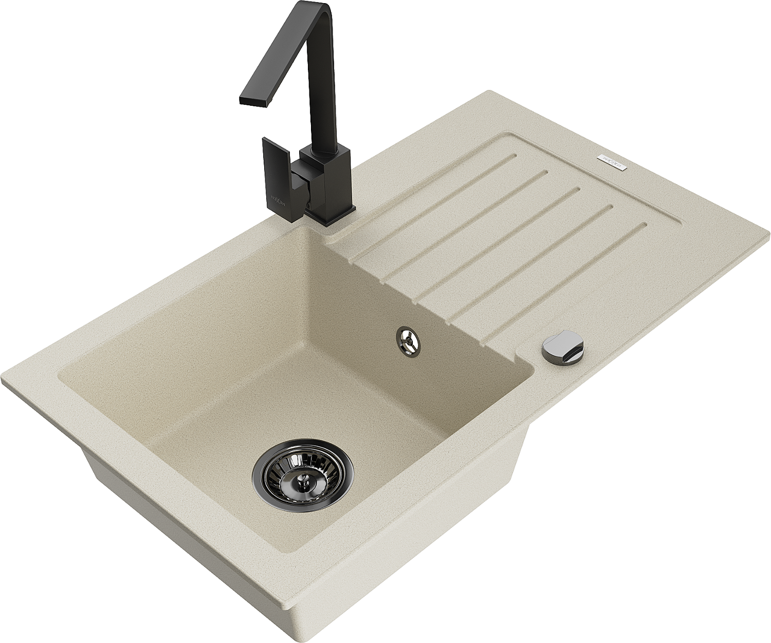 Mexen Pablo granitizlietne ar vienu nodalījumu ar notecinātāju un virtuves krānu Rita, bēšs - 6510-69-670300-70