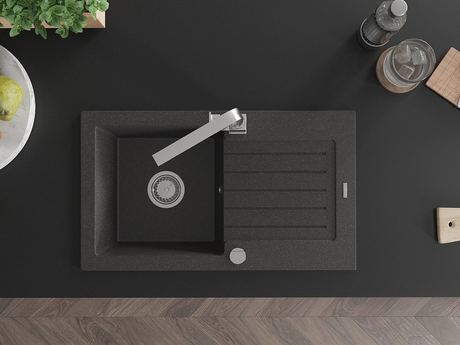 Mexen Pablo granit izlietne ar 1 nodalījumu ar drenāžu un virtuves jaucējkrānu Rita, melna ar punktiem - 6510-76-670300-00