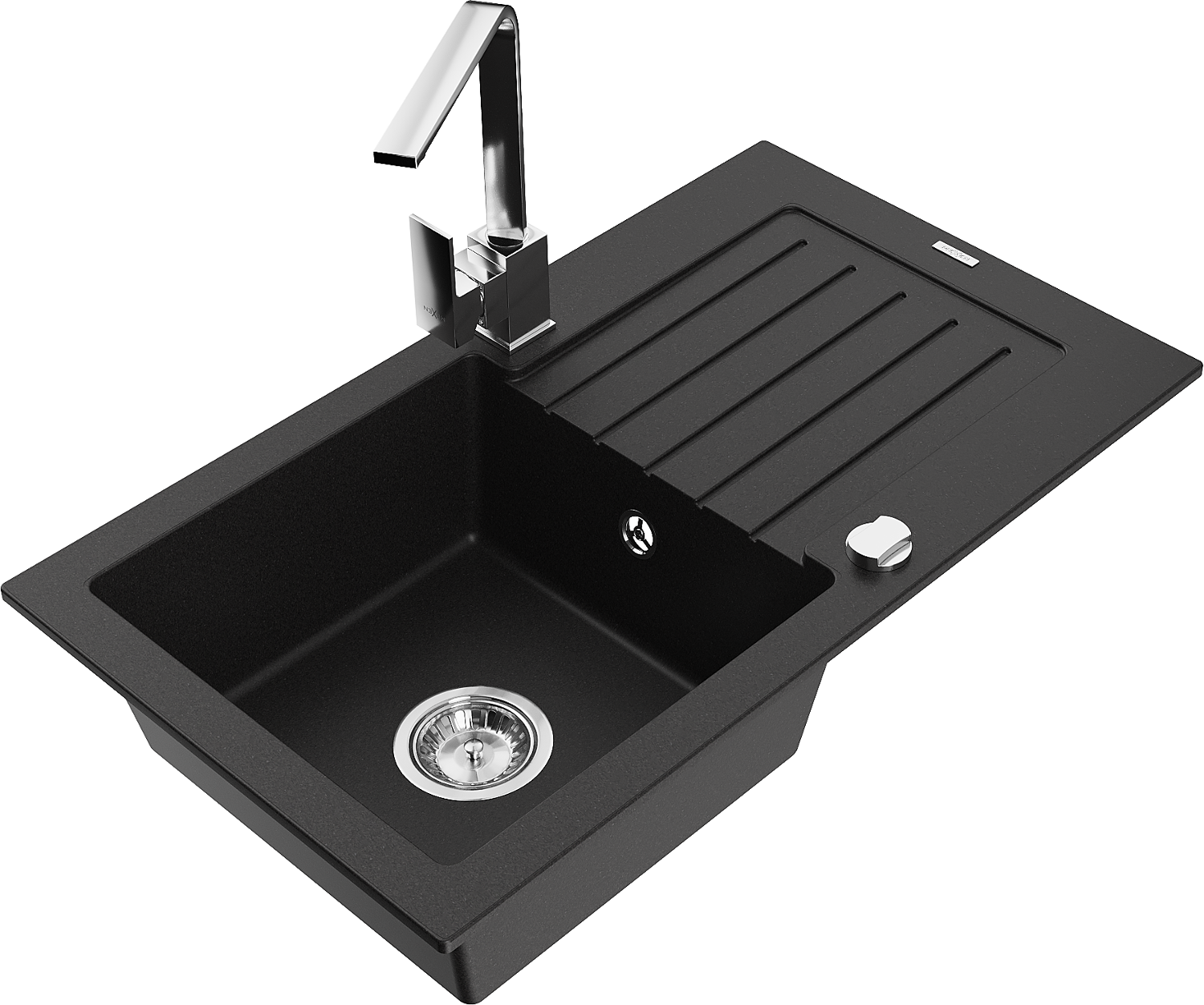 Mexen Pablo granitais izlietne ar vienu nodalījumu, ar ūdens noteci un virtuves jaucējkrānu Rita, melna - 6510-77-670300-00