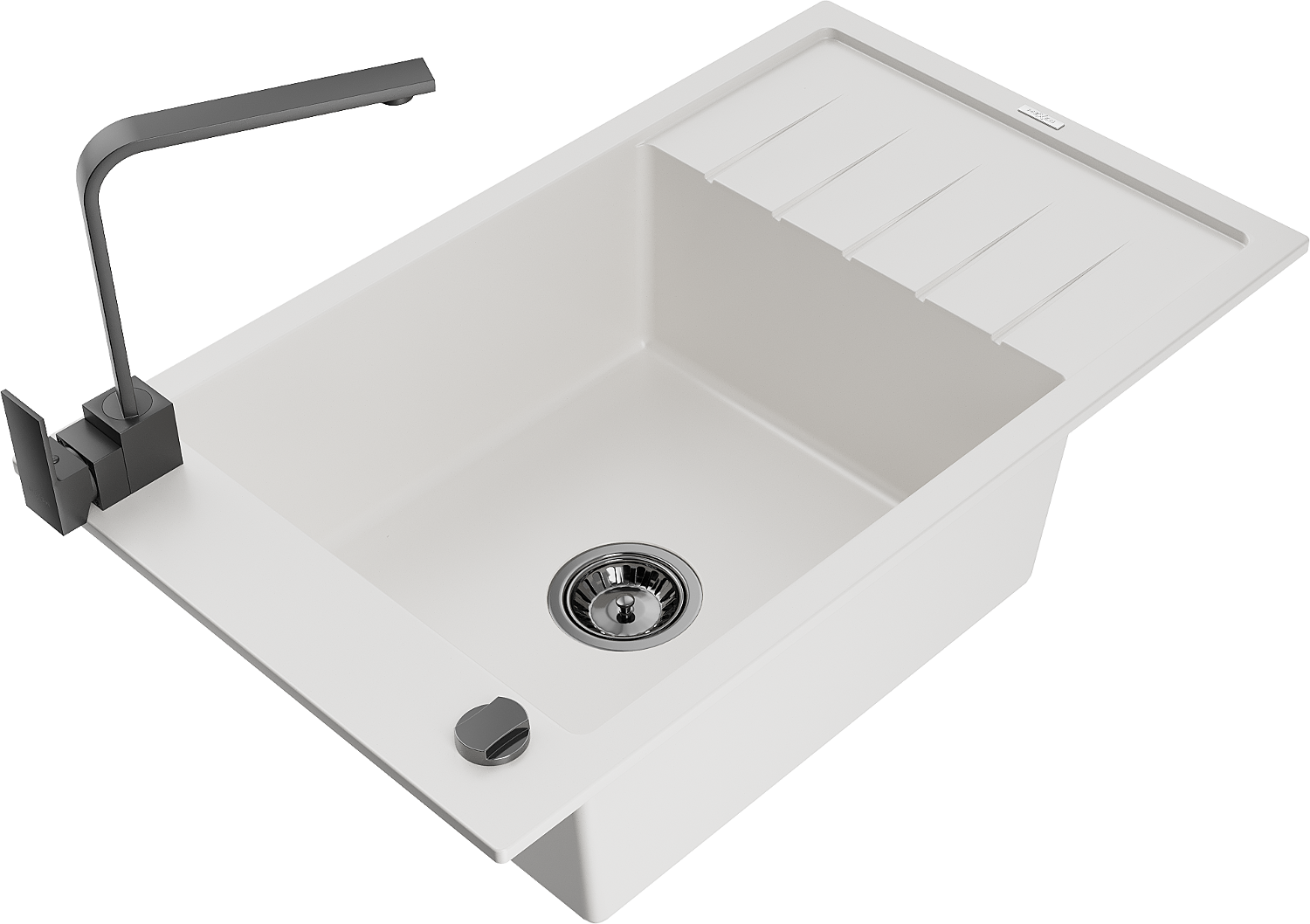 Mexen Elias granitizlietne ar vienu nodalījumu un noteku un virtuves jaucējkrānu Rita, balta - 6511-20-670300-70