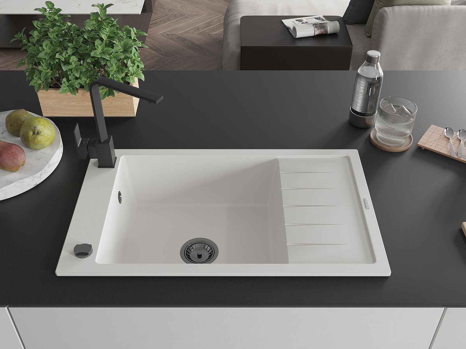 Izlietnes virsma ir izturīga pret traipiem un krāsas izmaiņām, tāpēc to ir viegli uzturēt tīru un tā saglabā savu krāsu ilgu lietošanas laiku. Estētiski un praktiski papildina jebkuru virtuvi.