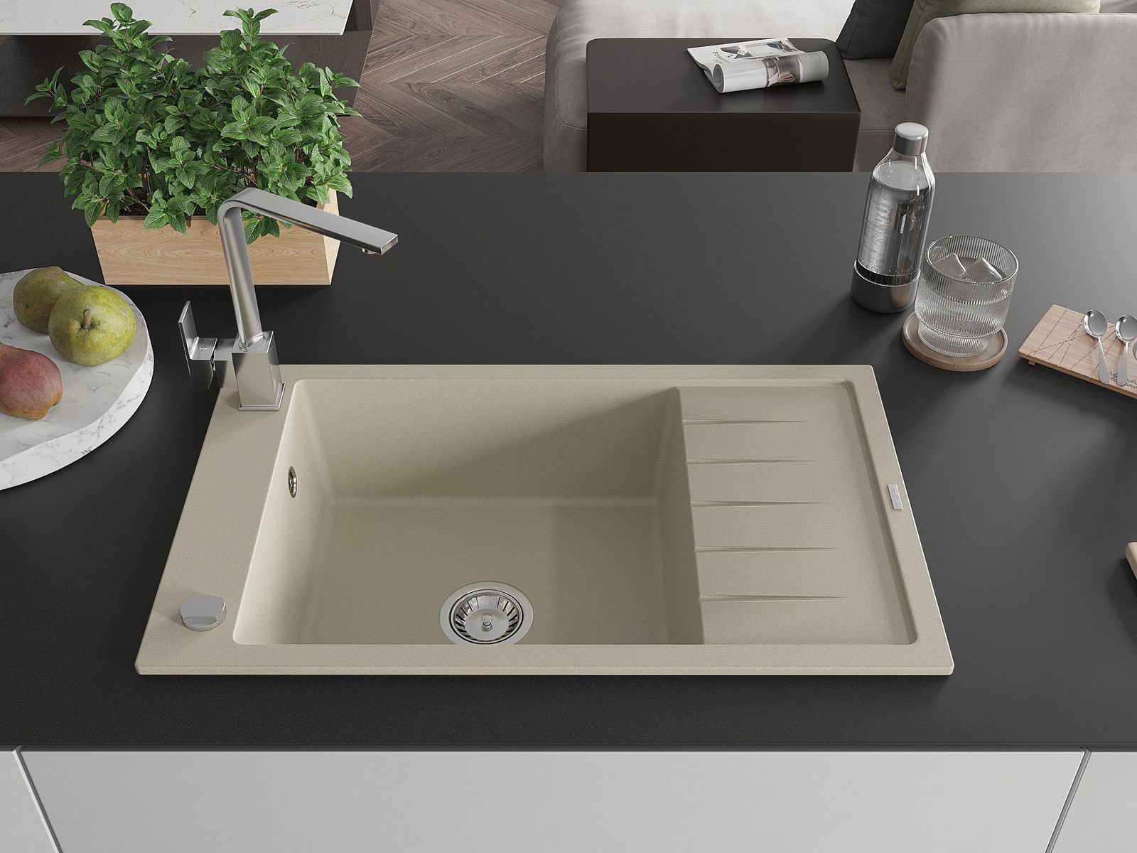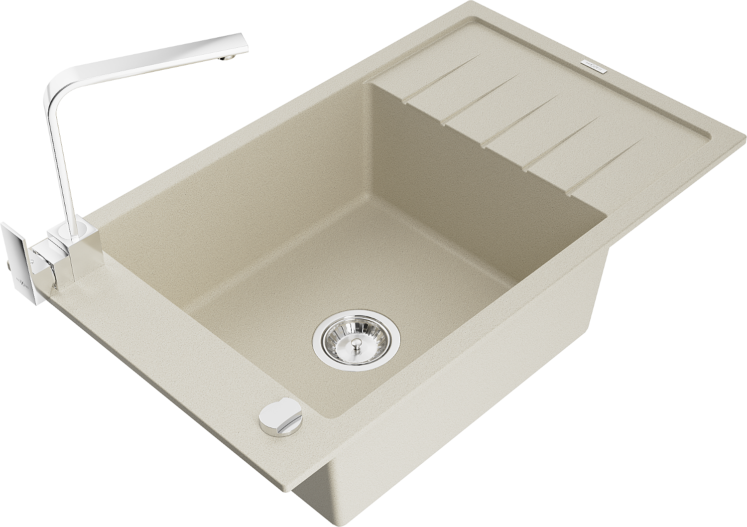 Mexen Elias granīta izlietne ar vienu nodalījumu, noteces un virtuves krānu Rita, bēša - 6511-69-670300-00