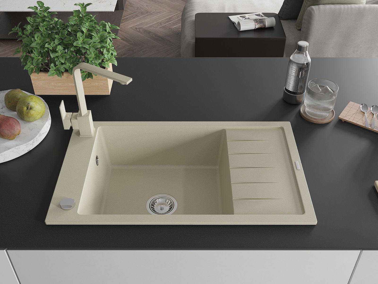 Izlietnes virsma ir izturīga pret traipiem un krāsas izmaiņām, tāpēc to ir viegli uzturēt tīru un tā saglabā savu krāsu ilgu lietošanas laiku. Estētiski un praktiski papildina jebkuru virtuvi.