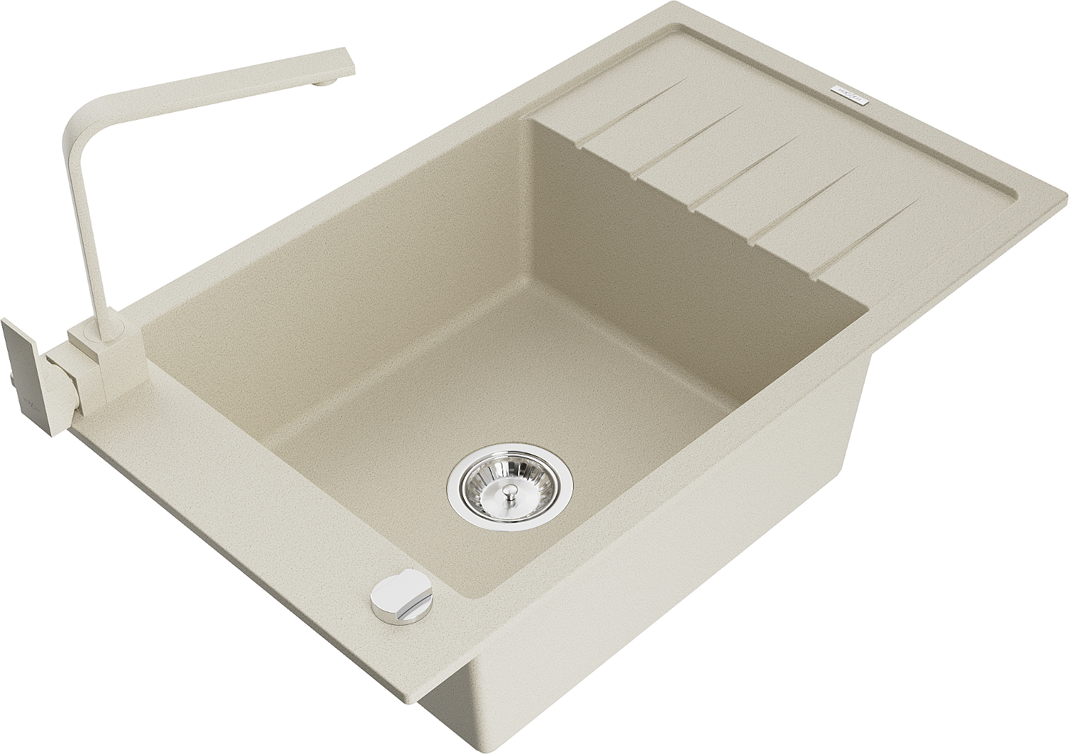 Mexen Elias granitais izlietne ar vienu nodalījumu, noteces paplāti un virtuves jaucējkrānu Rita, bēšs - 6511-69-670300-69