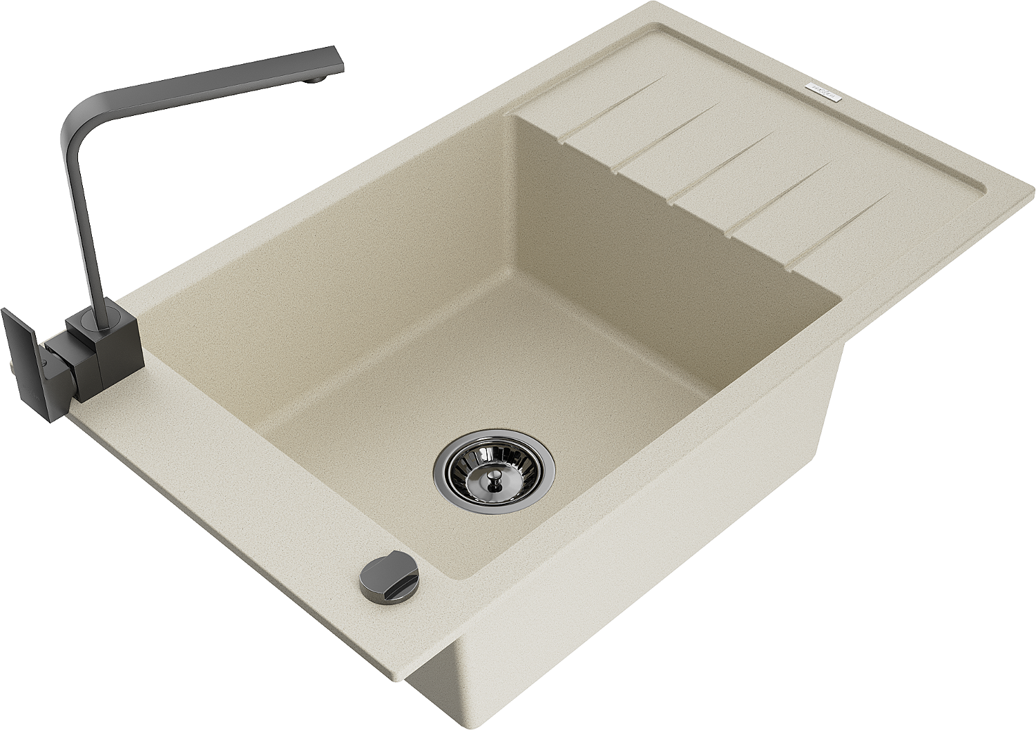 Mexen Elias granitā izlietne ar vienu nodalījumu ar nosūcēju un virtuves jaucējkrānu Rita, bēša - 6511-69-670300-70