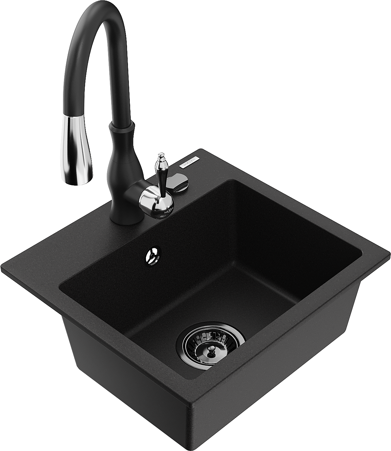 Mexen Milo granit izlietne ar vienu nodalījumu un virtuves krānu Savita, melna - 6505-77-672601-70-B