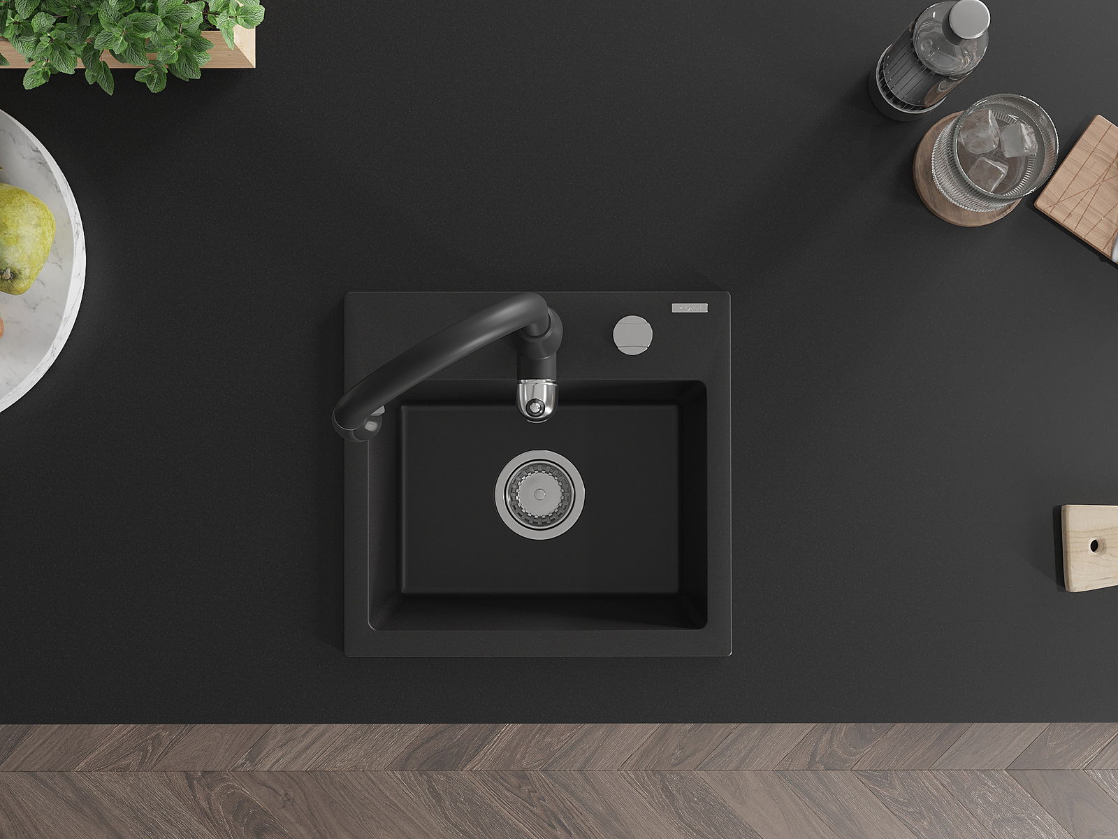 Mexen Milo granitīgs virtuves izlietne ar 1 nodalījumu un jaucējkrānu Savita, melns - 6505-77-672601-70