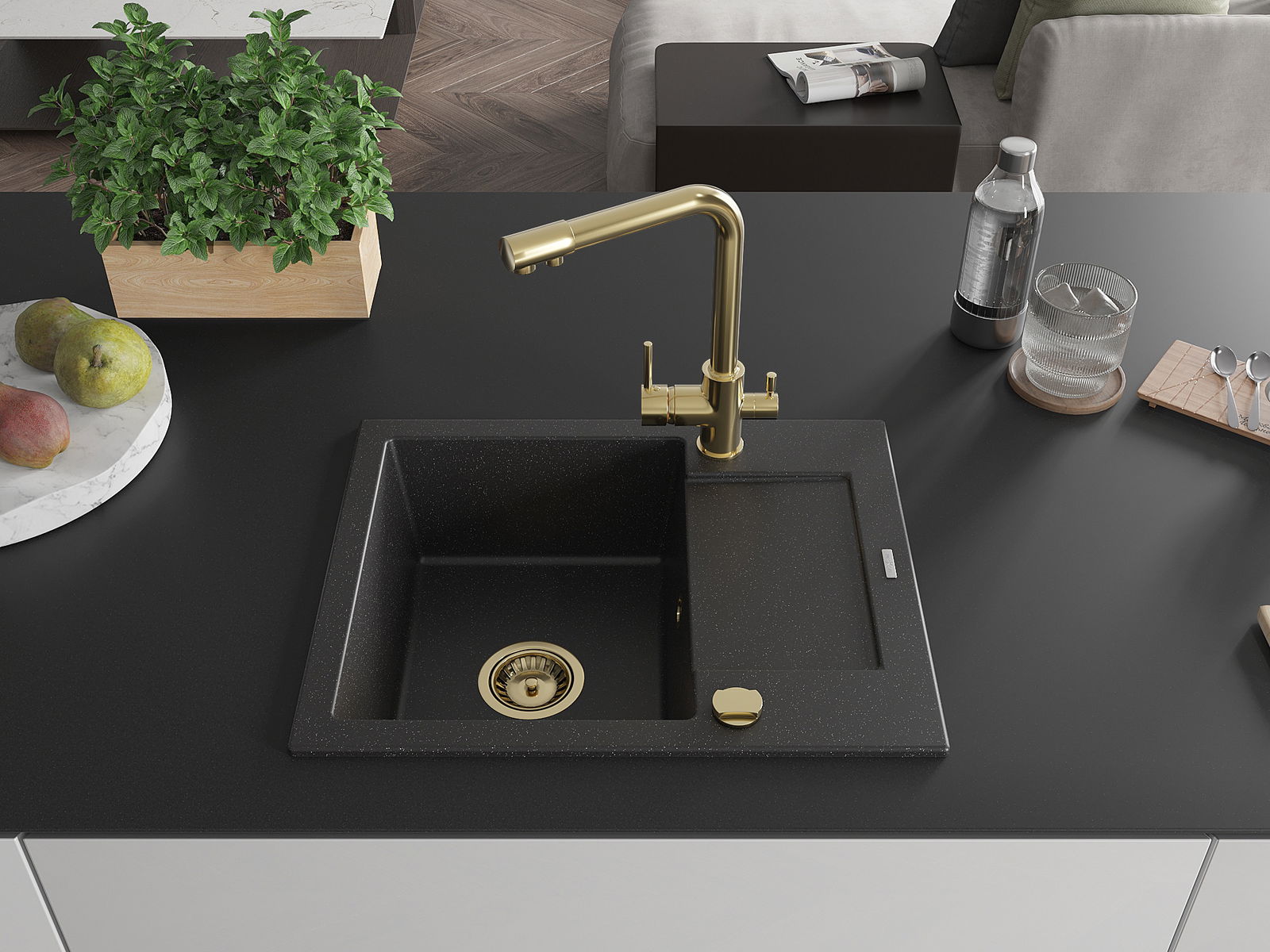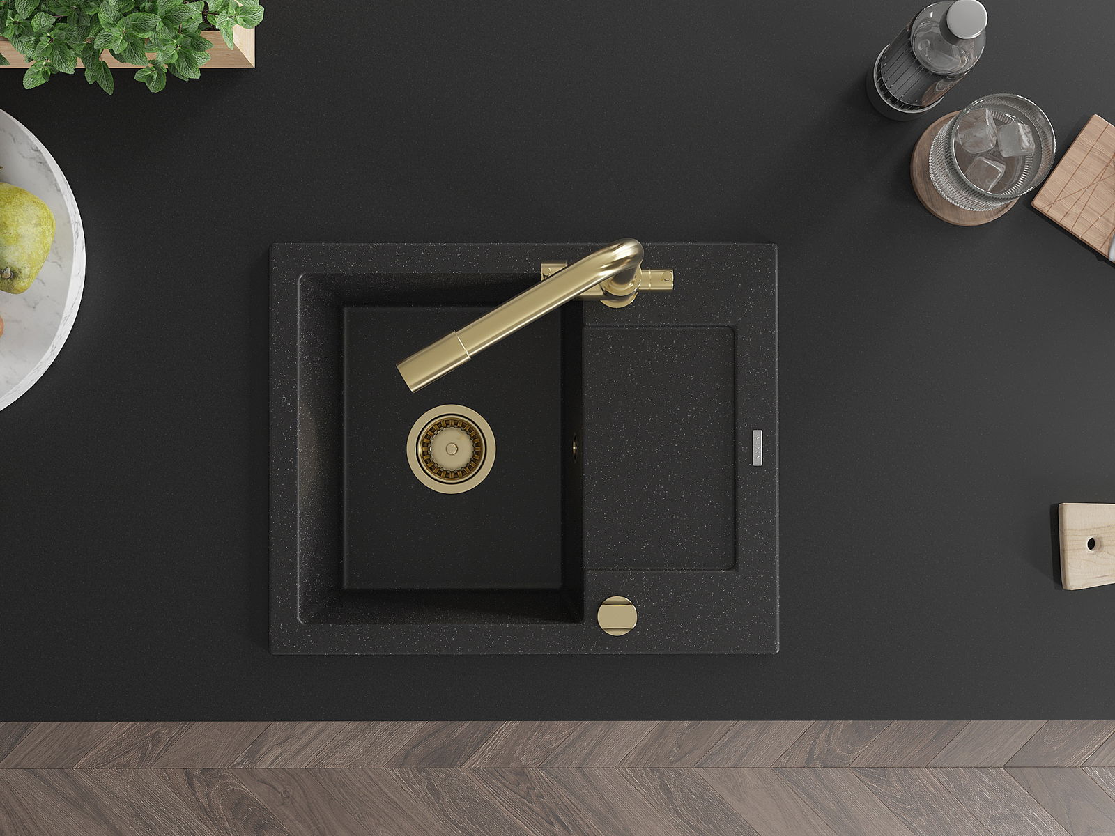 Mexen Enzo granitizlietne izlietne ar vienu nodalījumu, ar noteces vietu un virtuves jaucējkrānu Duero, melns/sudraba