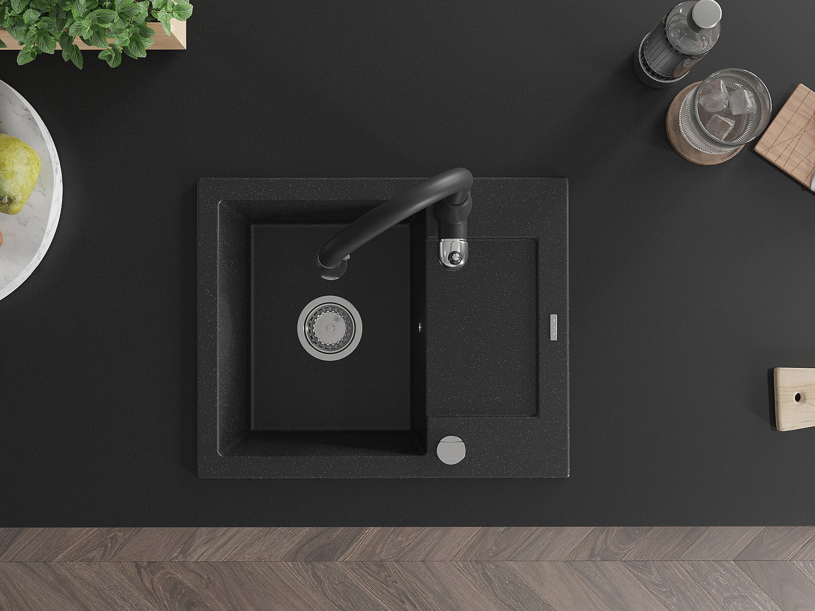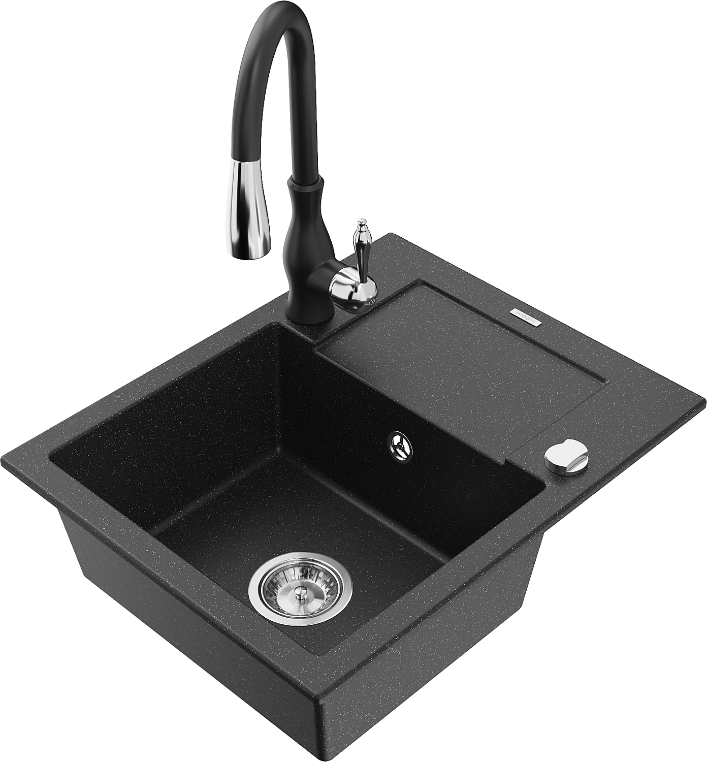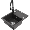 Mexen Enzo 1-kameru granīta izlietne ar noteku un virtuves jaucējkrānu Savita, melna/sudraba metālika - 6506-73-672601-70