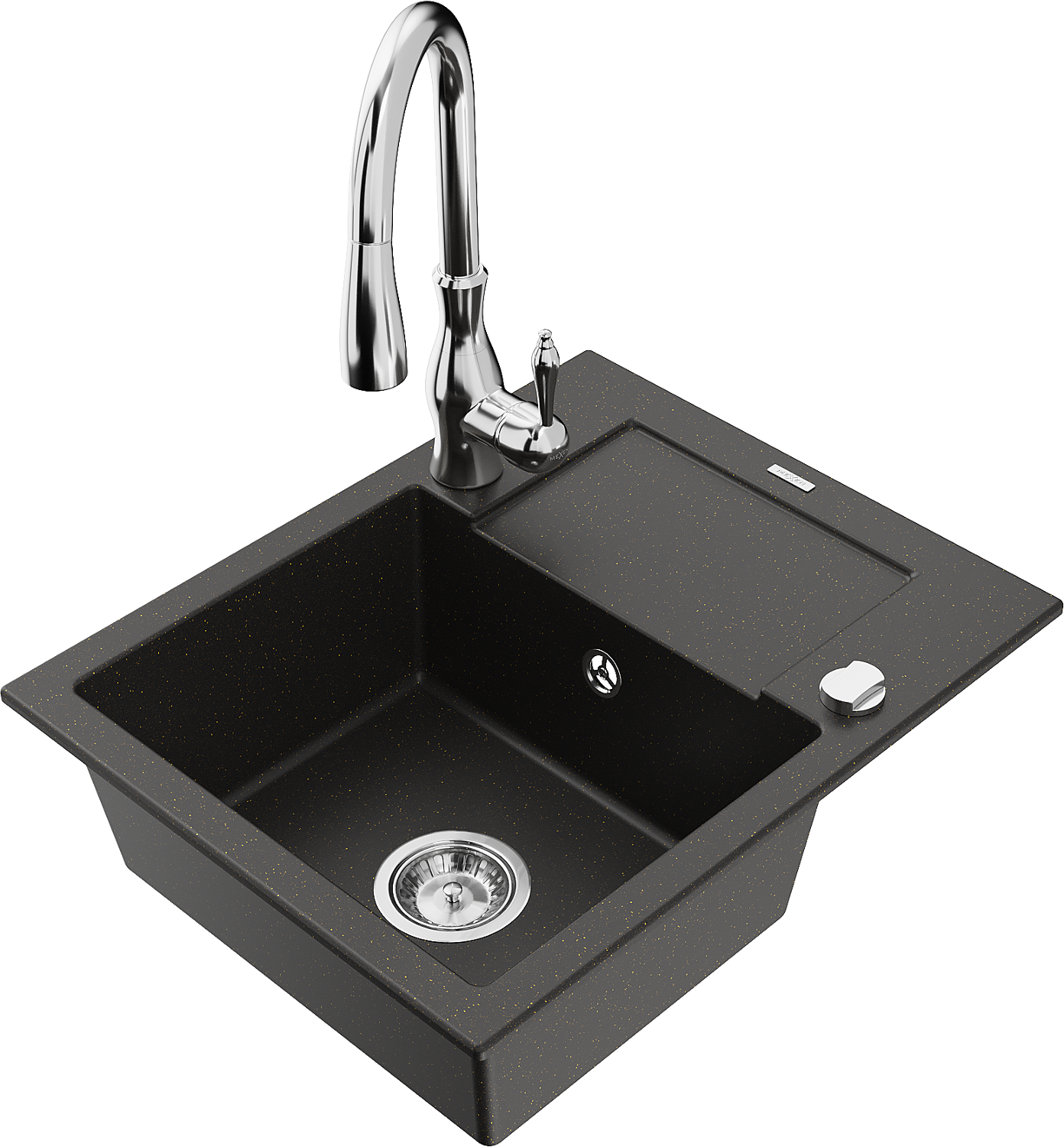 Mexen Enzo granitizlietne ar vienu nodalījumu un notekpaplāti, ar Savita virtuves jaucējkrānu, melns/zelts metāliska krāsa