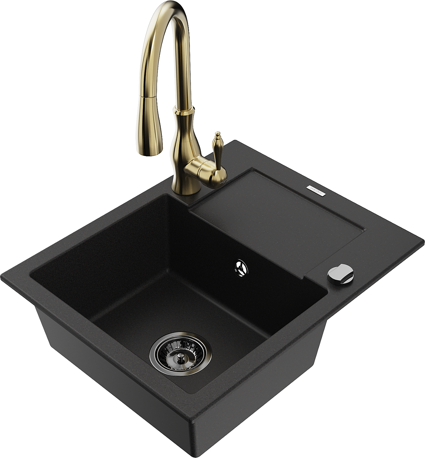 Mexen Enzo granitais izlietne ar 1 nodalījumu, noteces plaukts un virtuves jaucējkrāns Savita, melna - 6506-77-672601-50-B