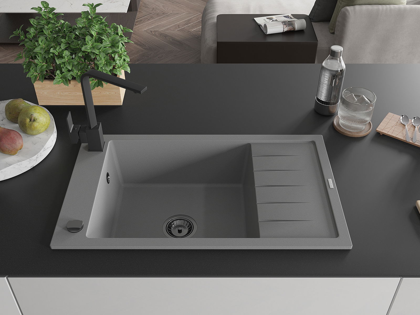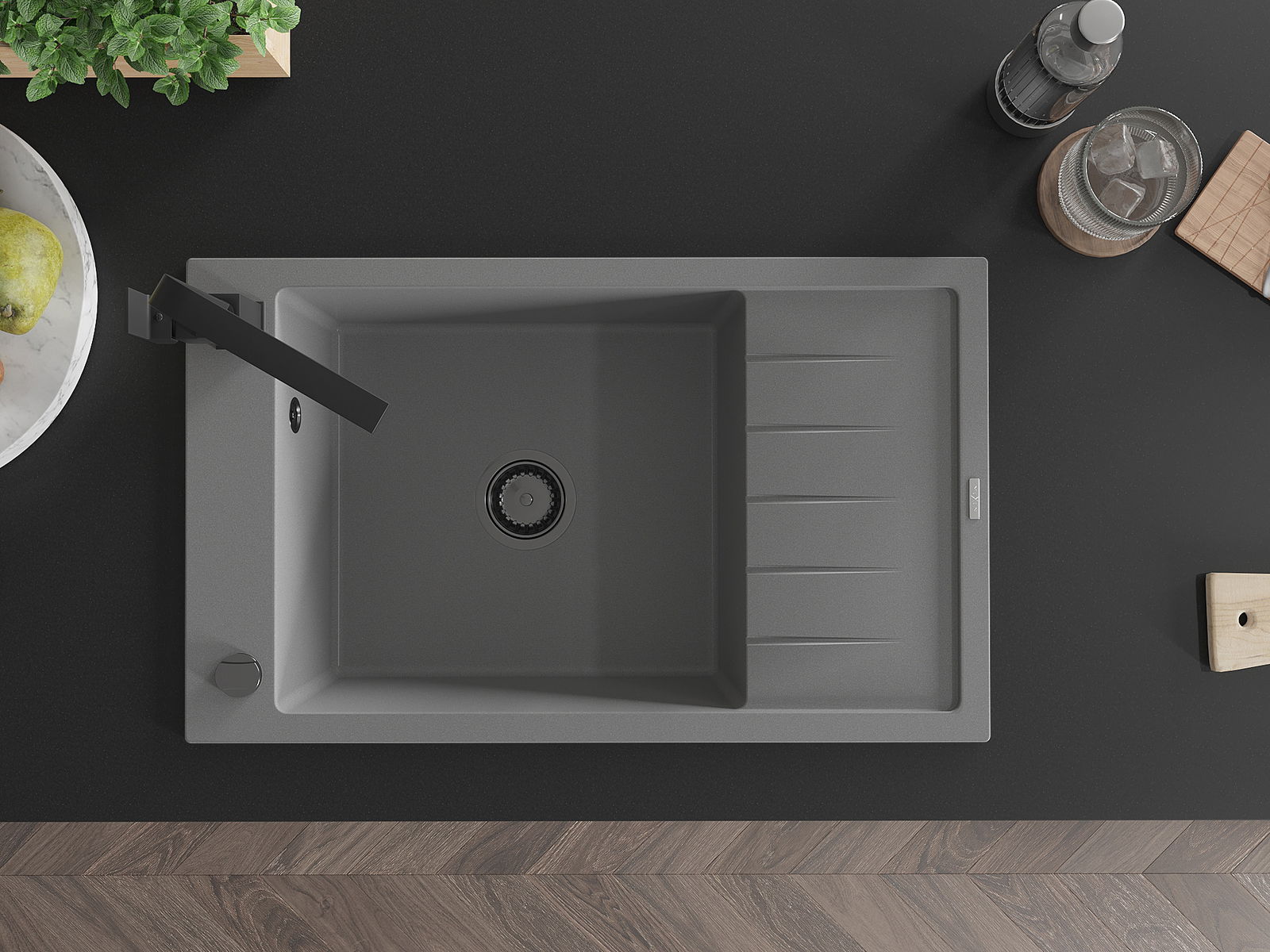 Mexen Elias granitizlietne 1-nodal ar notektilpu un virtuves jaucējkrānu Rita, pelēks - 6511-71-670300-70-B