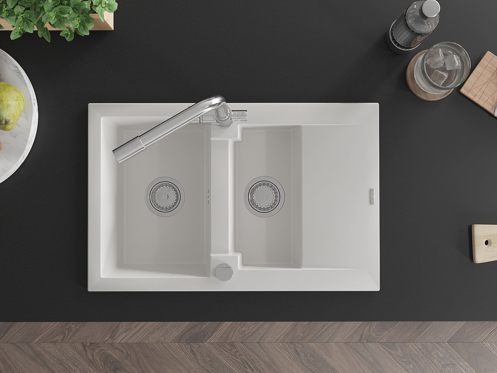 Izlietnes virsma ir izturīga pret traipiem un krāsas izmaiņām, tāpēc to ir viegli uzturēt tīru un tā saglabā savu krāsu ilgu lietošanas laiku. Estētiski un praktiski papildina jebkuru virtuvi.