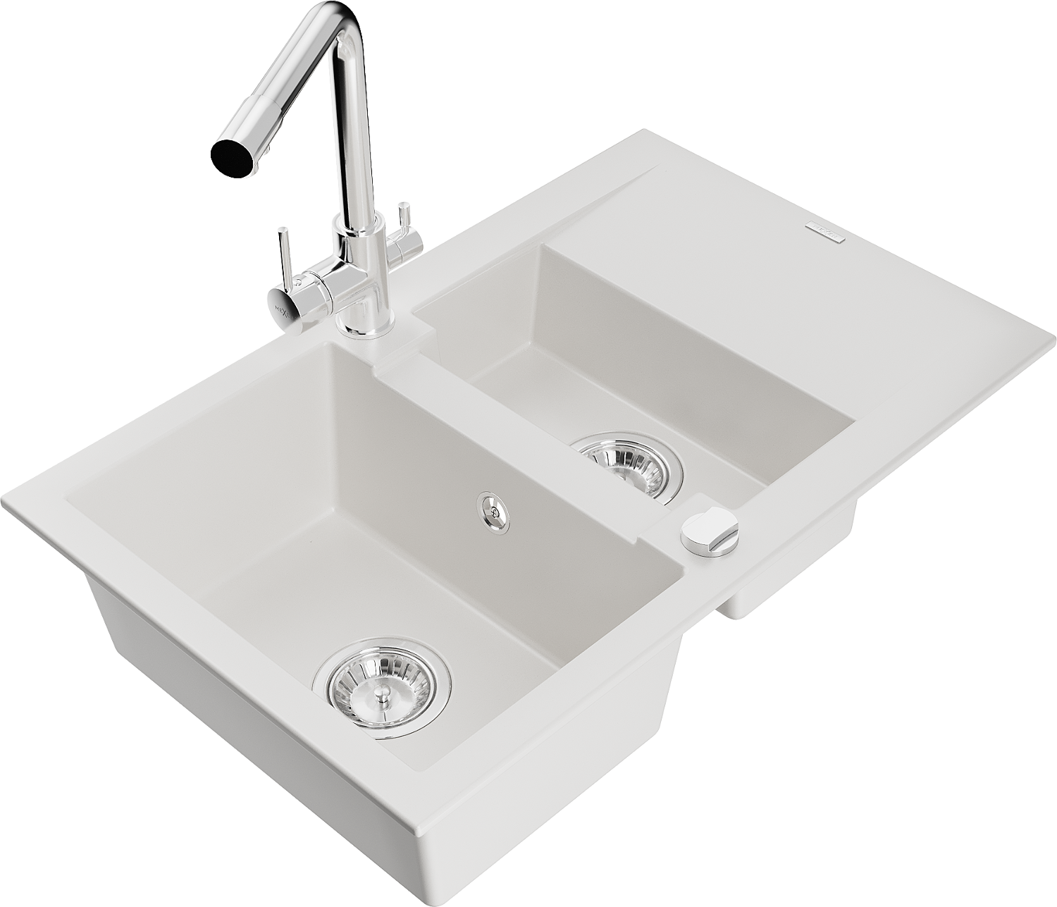 Mexen Gaspar granitīga izlietne 1,5 nodalījums ar drenāžu un virtuves jaucējkrānu Duero, balta - 6507-20-671600-00