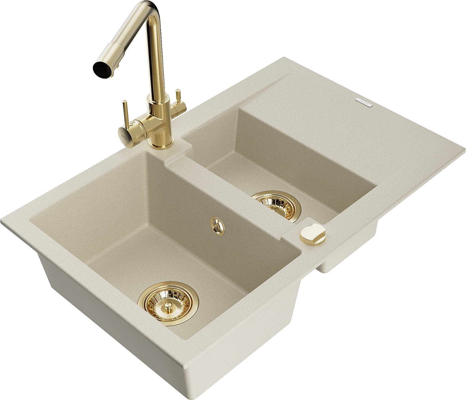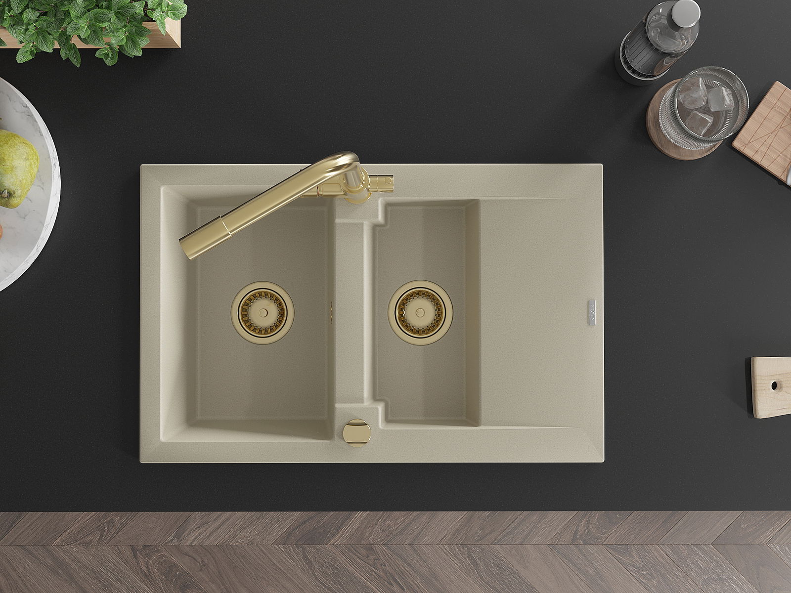 Mexen Gaspar granitā izlietne 1,5 nodalījumā ar noteces virsmu un Duero virtuves jaucējkrānu, bēšs - 6507-69-671600-50