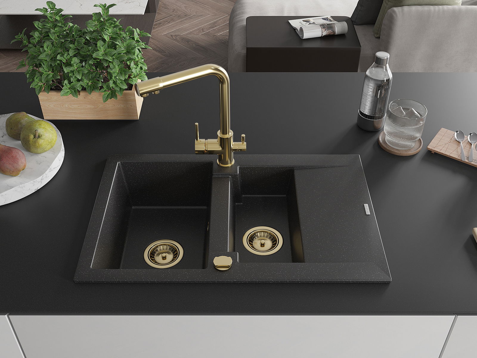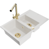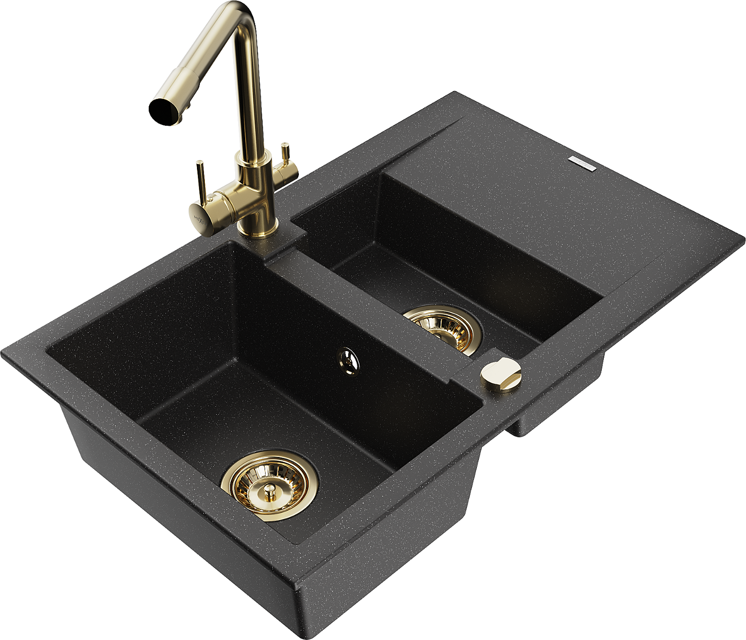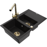Mexen Gaspar granīta izlietne ar 1,5 nodalījumiem, ar noteku un virtuves jaucējkrānu Duero, melna/sudraba